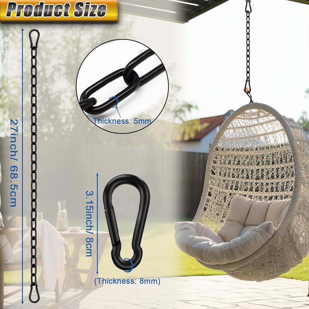 • Versatile Black Chain for Hanging: This black chain for hanging includes 2 adjustable 21 inches heavy-duty chains and 4 carabiners. Use this swing chain for porch swings, hammock chairs, heavy bag chain, or as a gate chain for an outdoor fence.