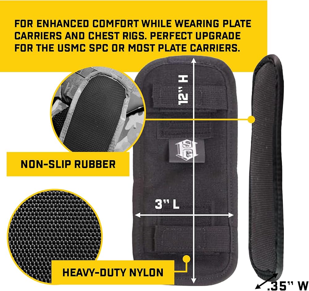 These shoulder pads will add a thin soft gel-like padding helping manage the load of most armor carriers and chest rigs.