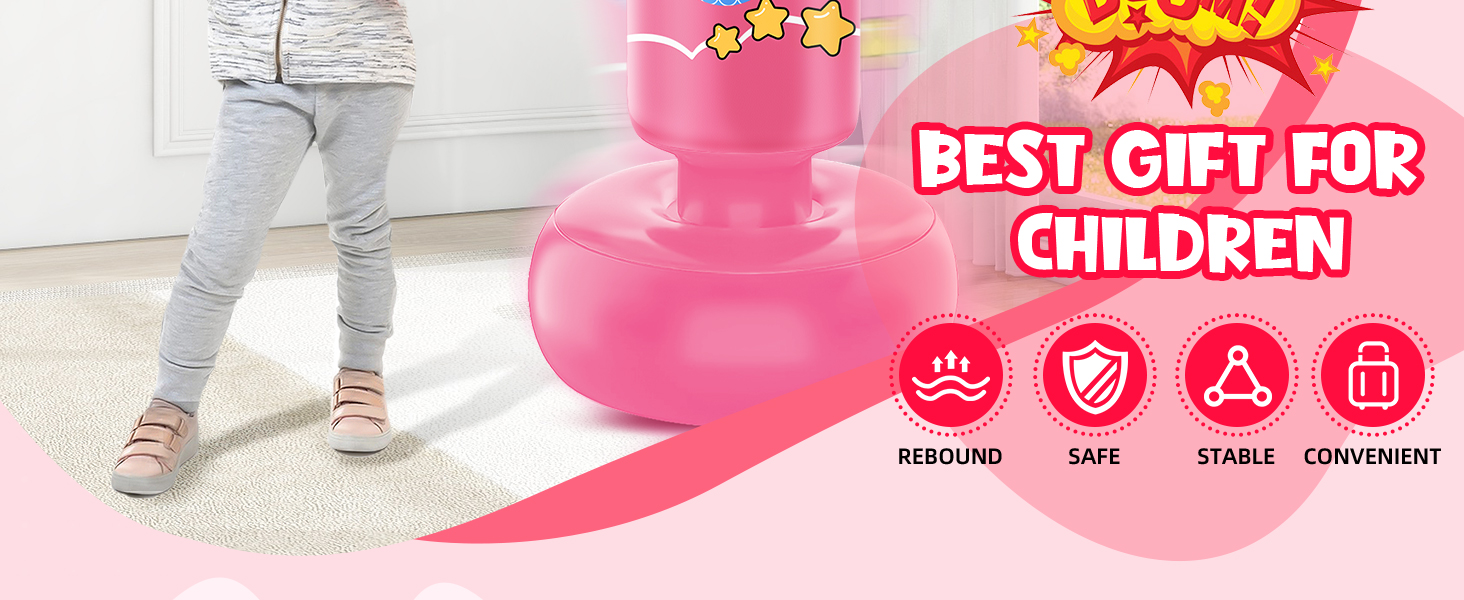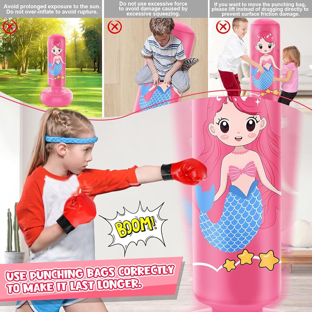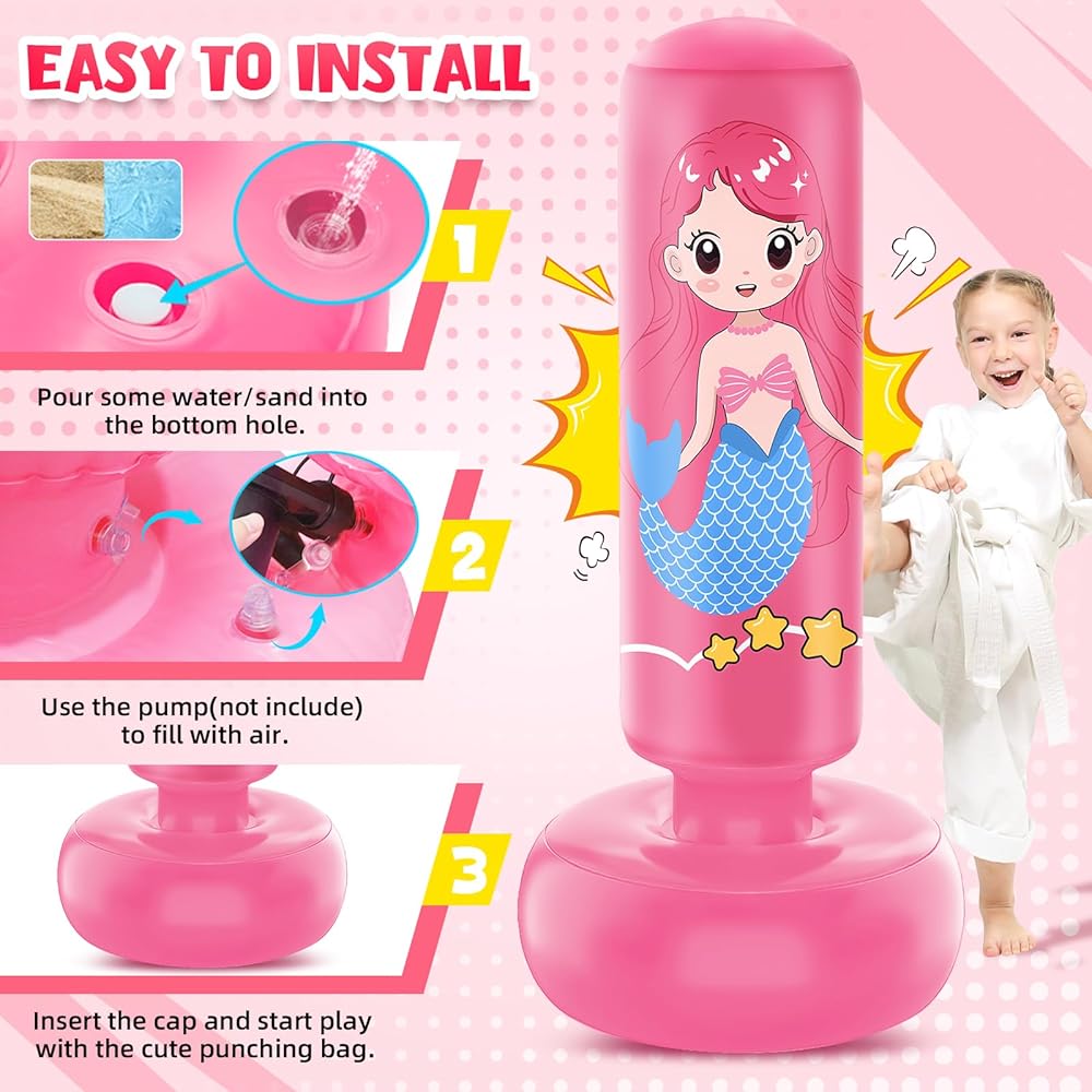 Easy to Use: Simply fill the base of the punching bag kids with water or sand for stability, and inflate the body parts with a air pump, then you can get a nice standing punching bag for toddlers.