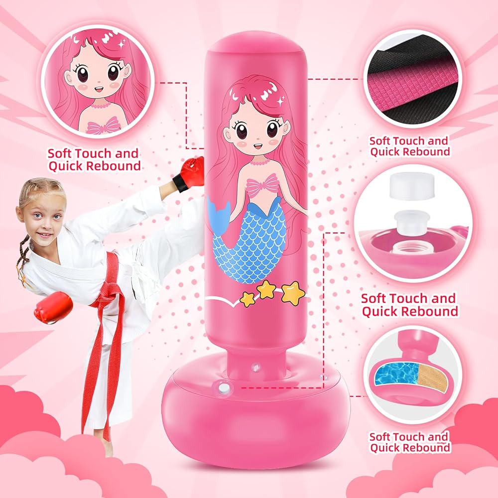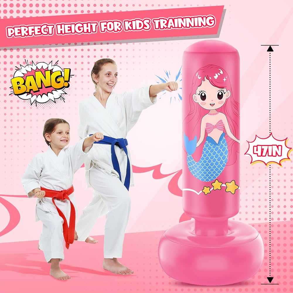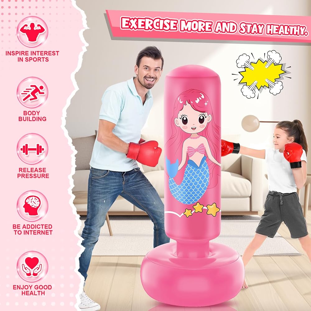 Promotes Growth: This stand up punching bag for kids feature vibrant colors and playful design, can captivate your child's interesting and turn exercise into an exciting boxing. Let them channel their inner strength, practicing various martial arts techniques, boxing drills, and fitness exercises, have a blast while staying active and healthy!