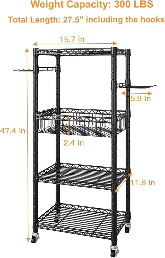 [قابل للتعديل]: الارتفاع الكامل 47.4 بوصة أعلى من رف التخزين العادي. ويمكن تعديل ارتفاع الرفين بحرية وفقًا لمتطلباتك عندما تحتاج إلى وضع بعض الدمبل والأجراس على الرفوف.