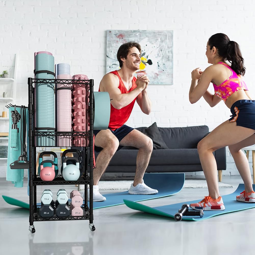 [قابل للقفل والمحمول]: يأتي تخزين بساط اليوجا المحمول المريح مع 4 عجلات صناعية عالية الجودة و2 منها قابلة للقفل. من الجيد أن تحمل معدات الصالة الرياضية المنزلية الخاصة بك