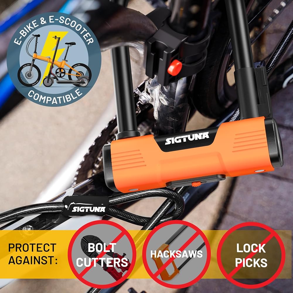 تطبيقات واسعة: مجموعة قفل الدراجة على شكل حرف U مناسبة تمامًا لتأمين الدراجات، والدراجات الكهربائية، والدراجات البخارية، والدراجات النارية، والسلالم، وشوايات الشواء، والمعدات الرياضية، وجزازات العشب، والمزيد