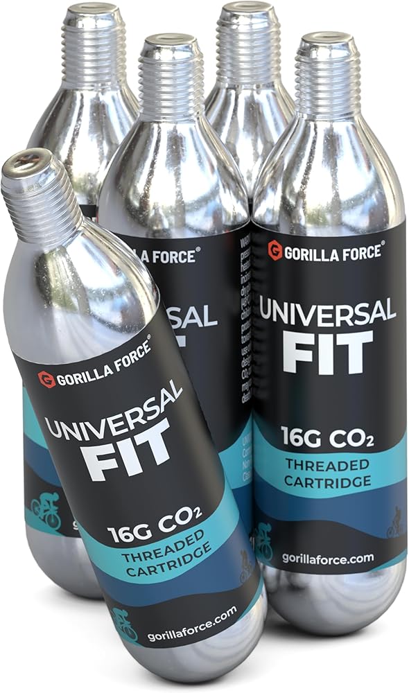 خراطيش غوريلا فورس 16 جرام ثاني أكسيد الكربون - مترابطة | صندوق من 5 | لمنفاخ إطارات الدراجة