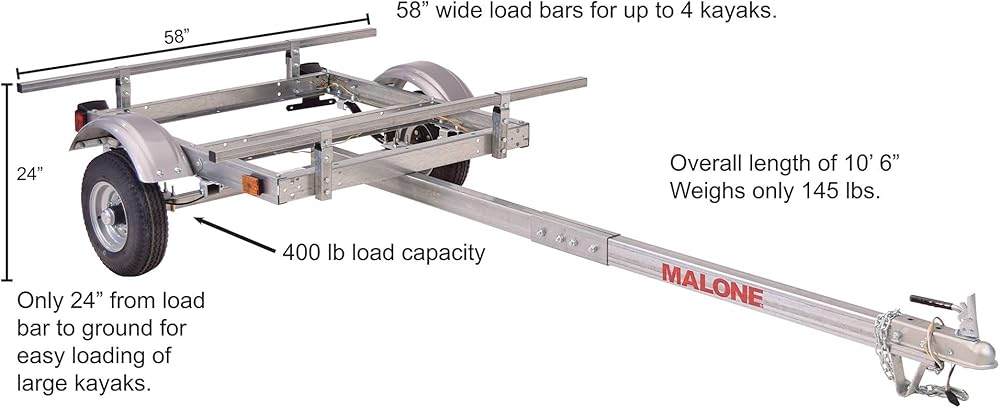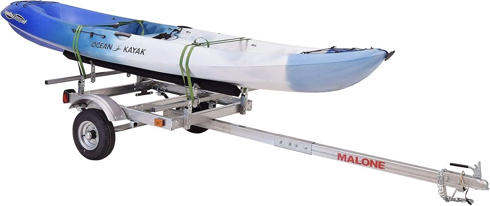 Malone EcoLight 1-Boat Kayak Trailer Package - The EcoLight is Maloneâ€s most affordable line of kayak trailers. Proudly designed and built in the USA with high-grade galvanized steel for years of use, EcolLight trailers can safely travel at most posted speed limits while transporting your load to your next adventure.