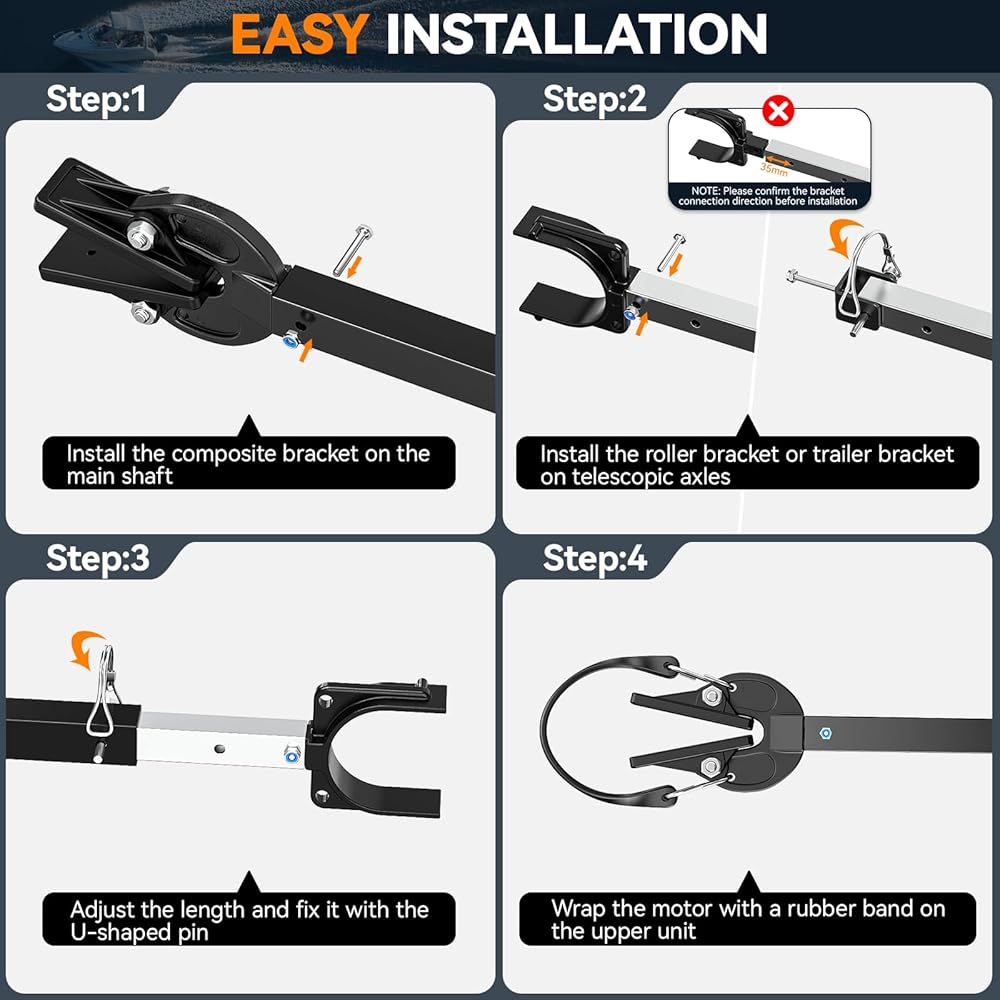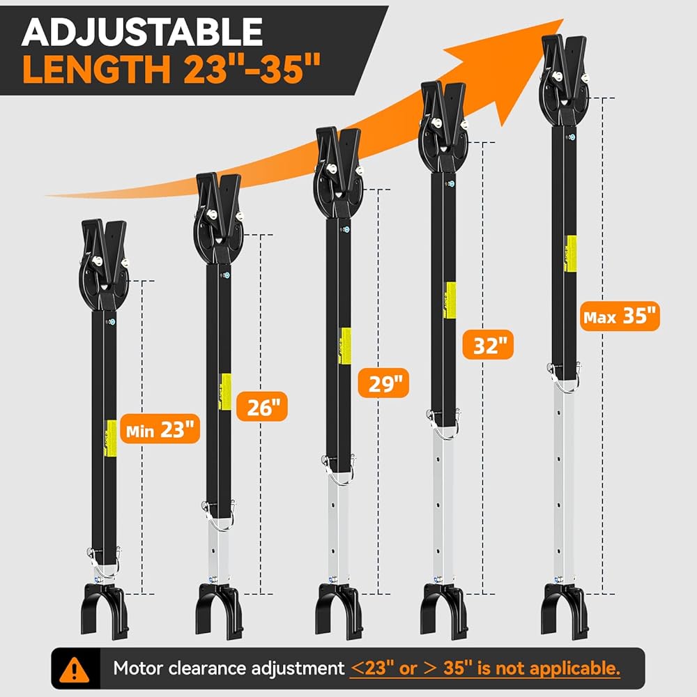 حافظة رافدة قابلة للتعديل: تتميز حافظات الرافعة للمحرك الخارجي بأطوال قابلة للتعديل تتراوح من 23 بوصة إلى 35 بوصة، مما يضمن دعمًا متعدد الاستخدامات لمجموعة متنوعة من إعدادات القوارب.