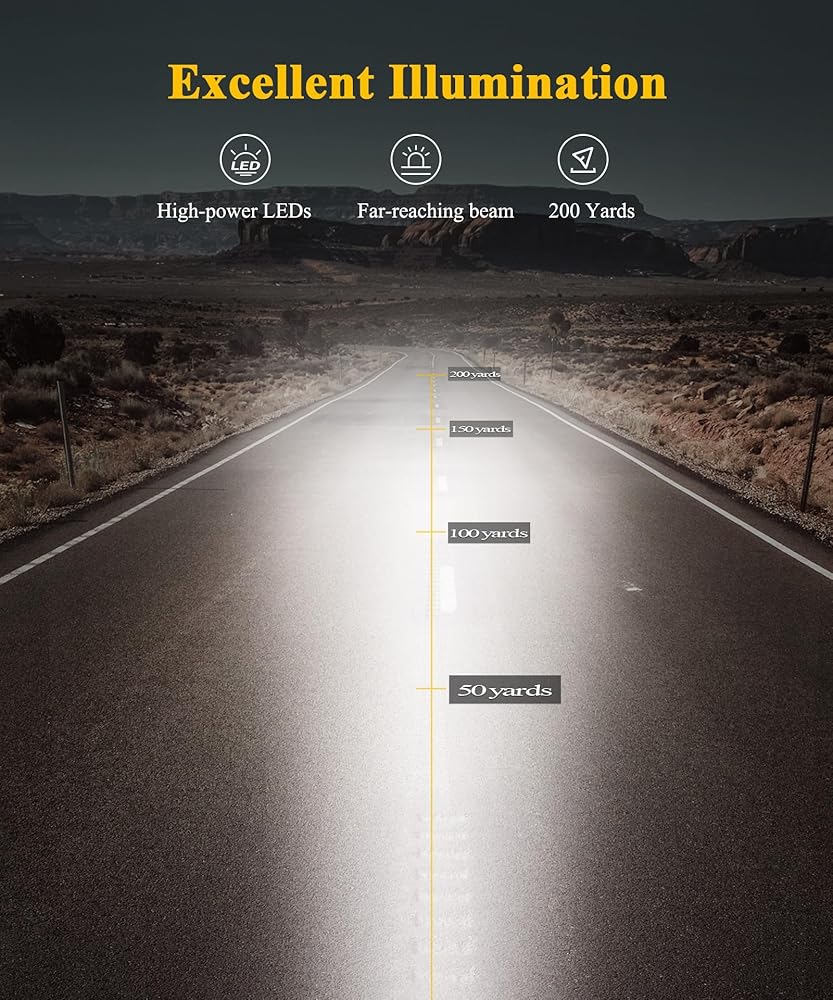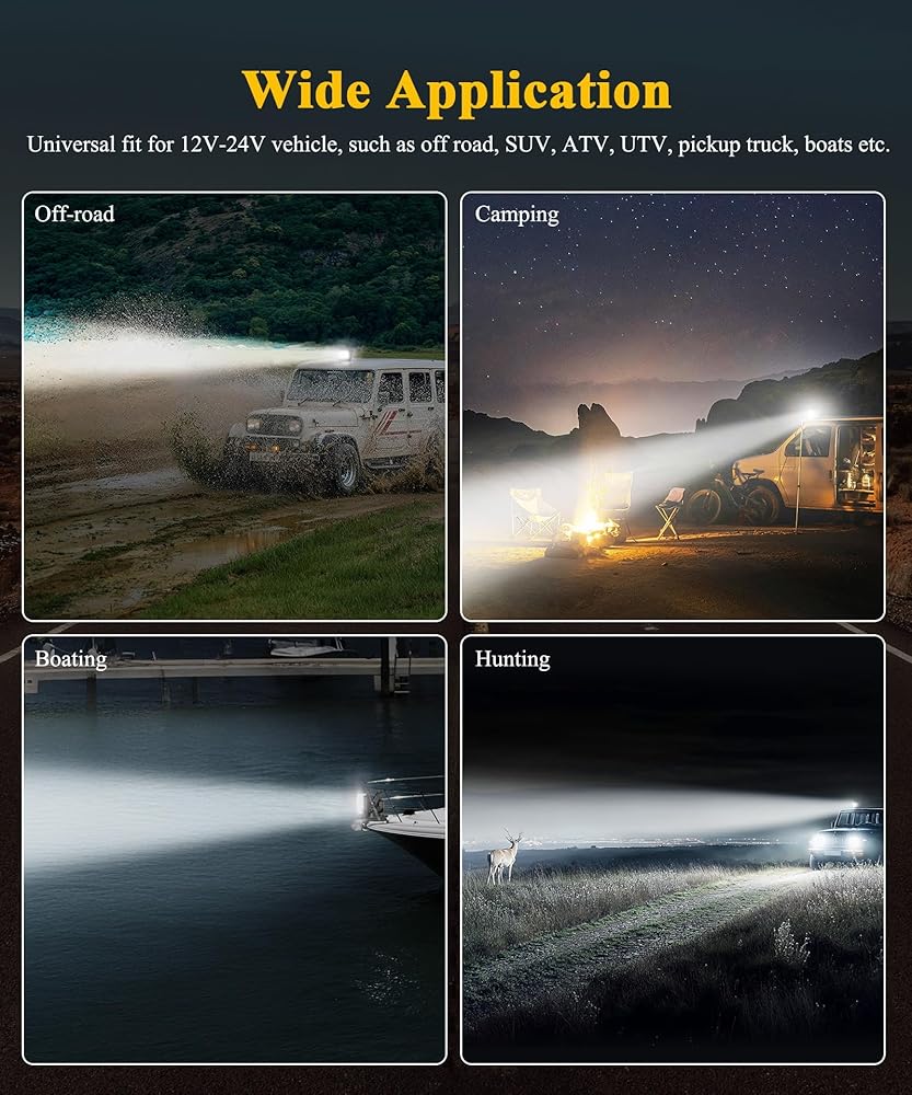 إضاءة ممتازة: 10 قطع مدمجة من مصابيح LED عالية الطاقة، 5000 لومن، مخرج طاقة 50 وات يضمن شعاعًا مركزًا وبعيد المدى، يضيء الليل، يضيء أكثر من 200 ياردة، رائع للبحث أو مسح الطريق للأمام في ظروف الإضاءة المنخفضة