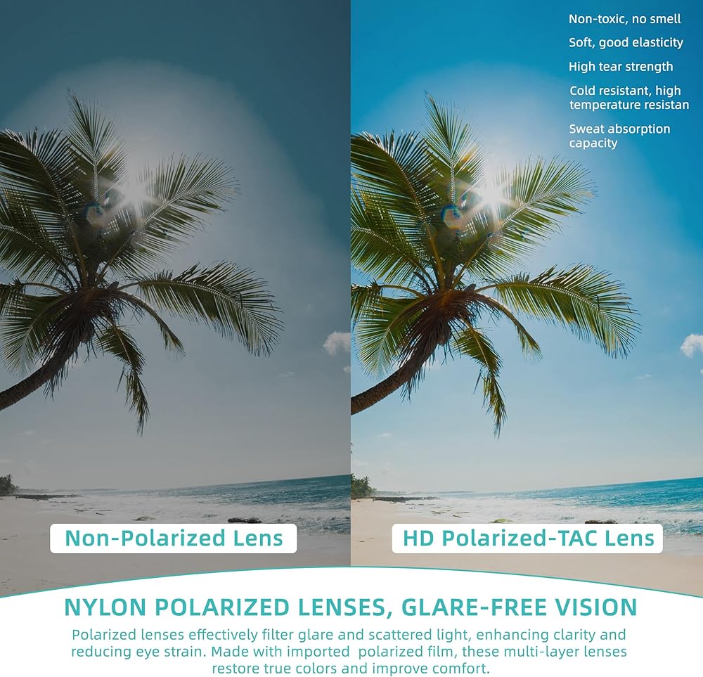 عدسات مستقطبة لرؤية واضحة: تتميز النظارات الشمسية الرجالية بدون إطار بعدسات مستقطبة تقلل الوهج والانعكاس بشكل فعال، وتوفر رؤية واضحة، خاصة في الضوء الساطع. إنها تعزز التباين، وتقلل من تشويه الألوان، وتقلل من إجهاد العين، مما يجعلها مثالية للأنشطة الخارجية مثل القيادة وصيد الأسماك وركوب الدراجات.