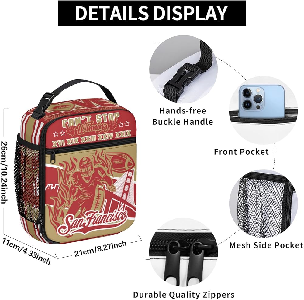 The Football lunch box has a large capacity and can hold lunch, fruits, snacks, and drinks. The lining is made of thick aluminum foil that can keep heat for hours and is easy to clean. The lightweight and easy-to-carry Football lunch bag has an adjustable shoulder strap for crossbody use. The Football lunch bag full of rugby design elements is perfect for giving to kids who love football.