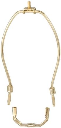 • 9 inch regular weight lamp harp with a detachable base and brass plated steel finish