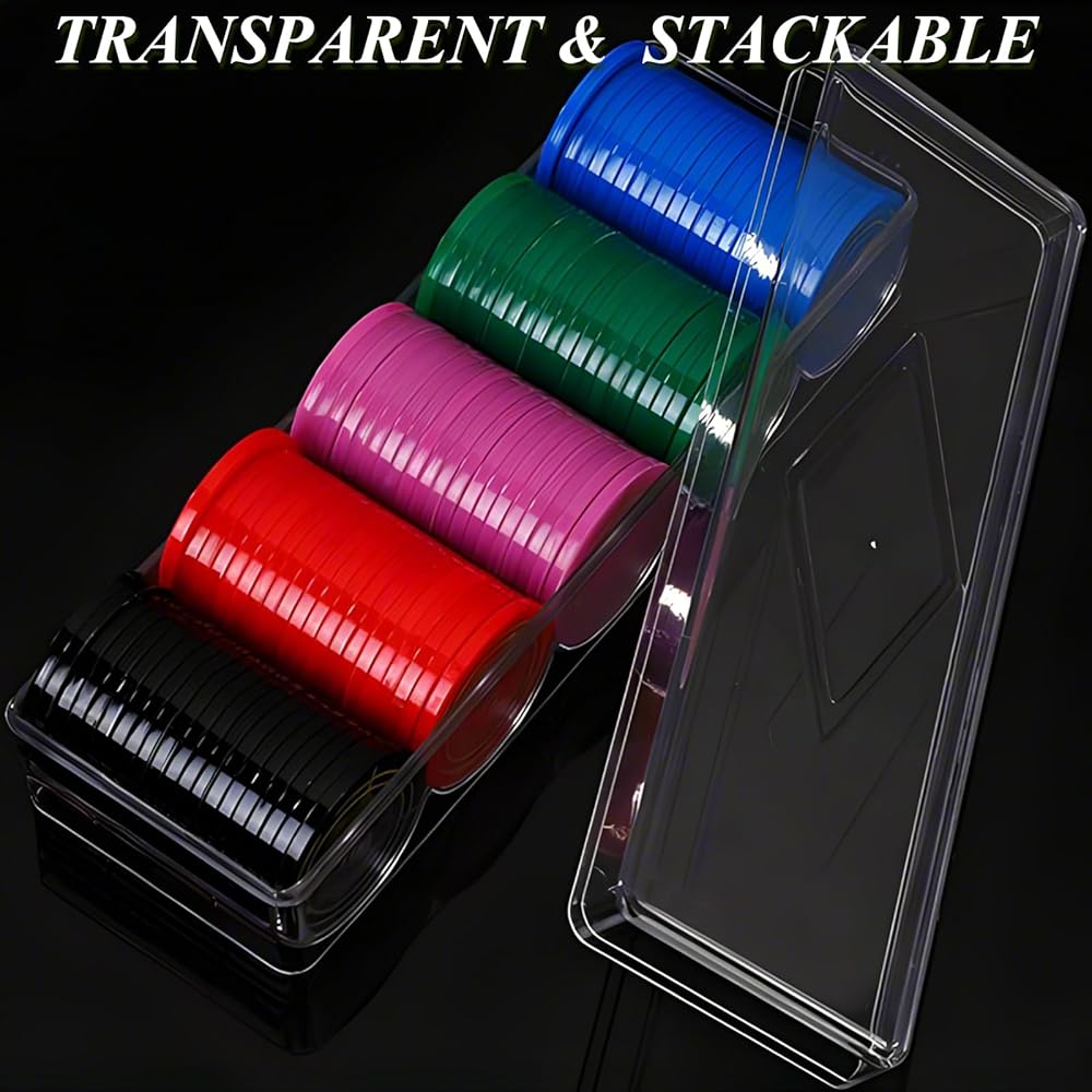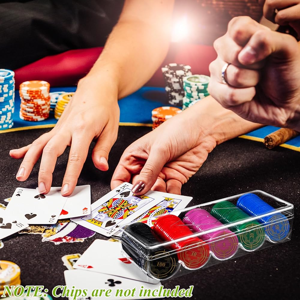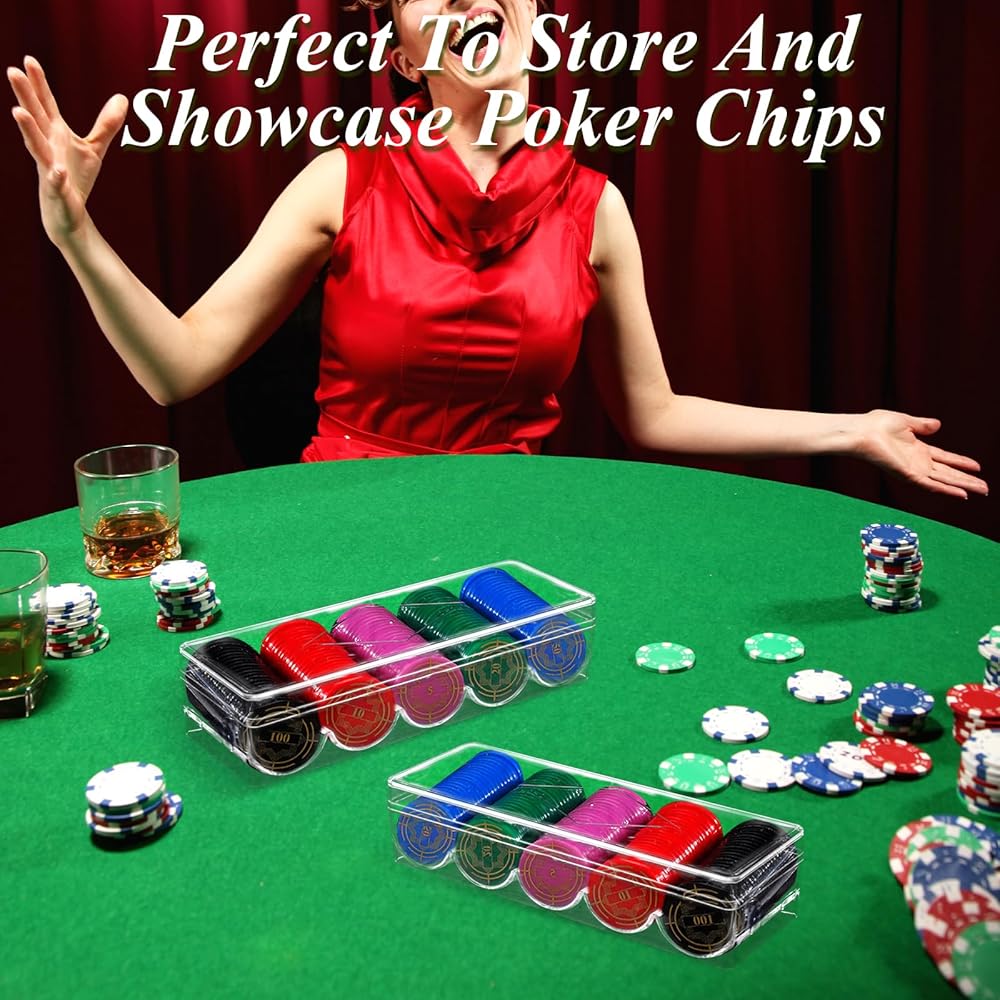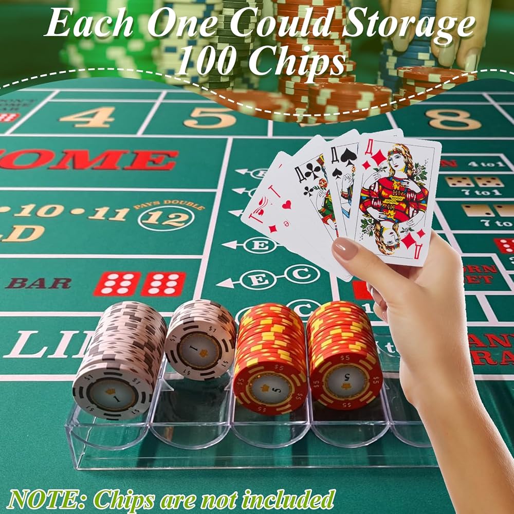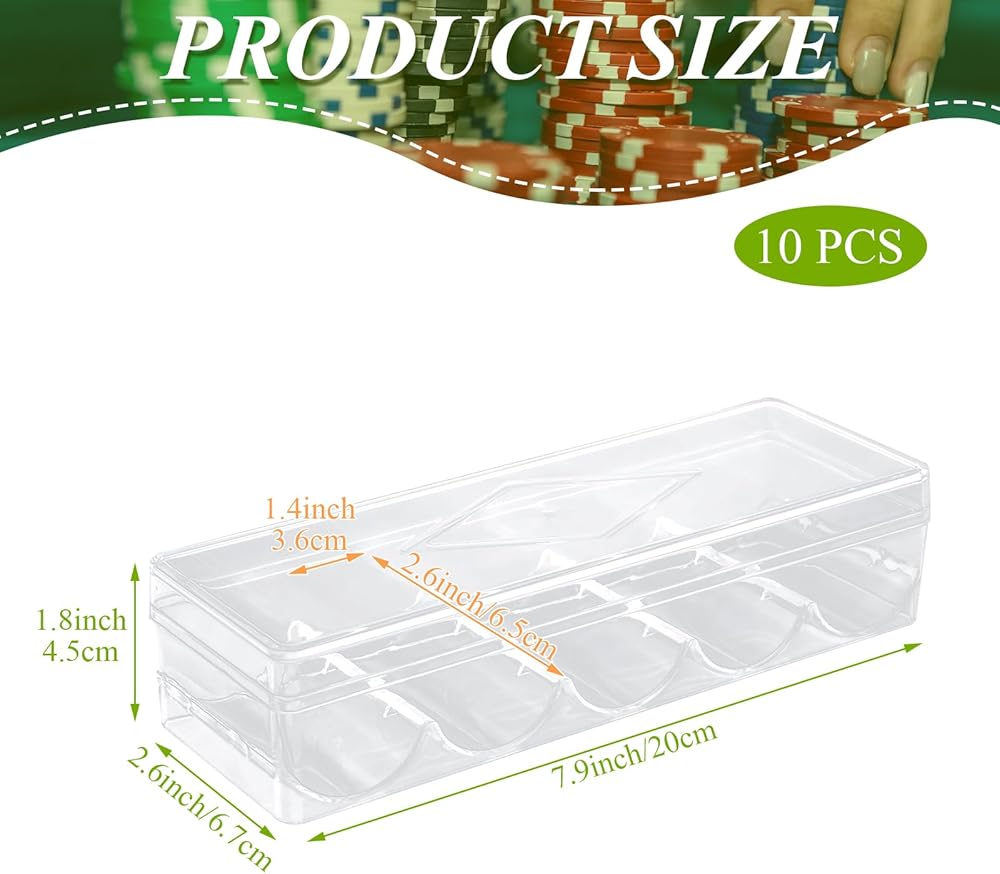 10 Pcs Poker Chip Holder with Lids Acrylic Poker Chip Tray Rack Chips Storage Display Case, Each Holds 100 Chips, Poker Table Dealer Chips Tray for Home Party Club