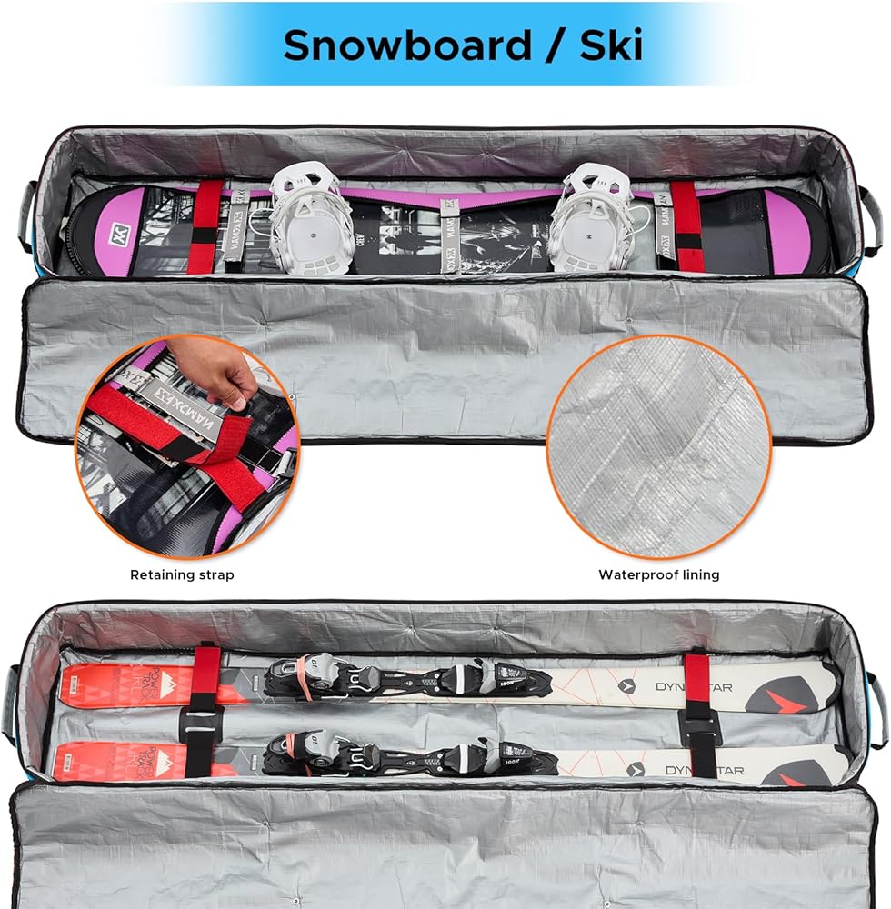 360-DEGREE PROTECTION :Thick foam padding on each side of this ski snowboard bag protects skis and other gear from damage.The inside is lined with a waterproof material to keep your snowboard safe during transit.