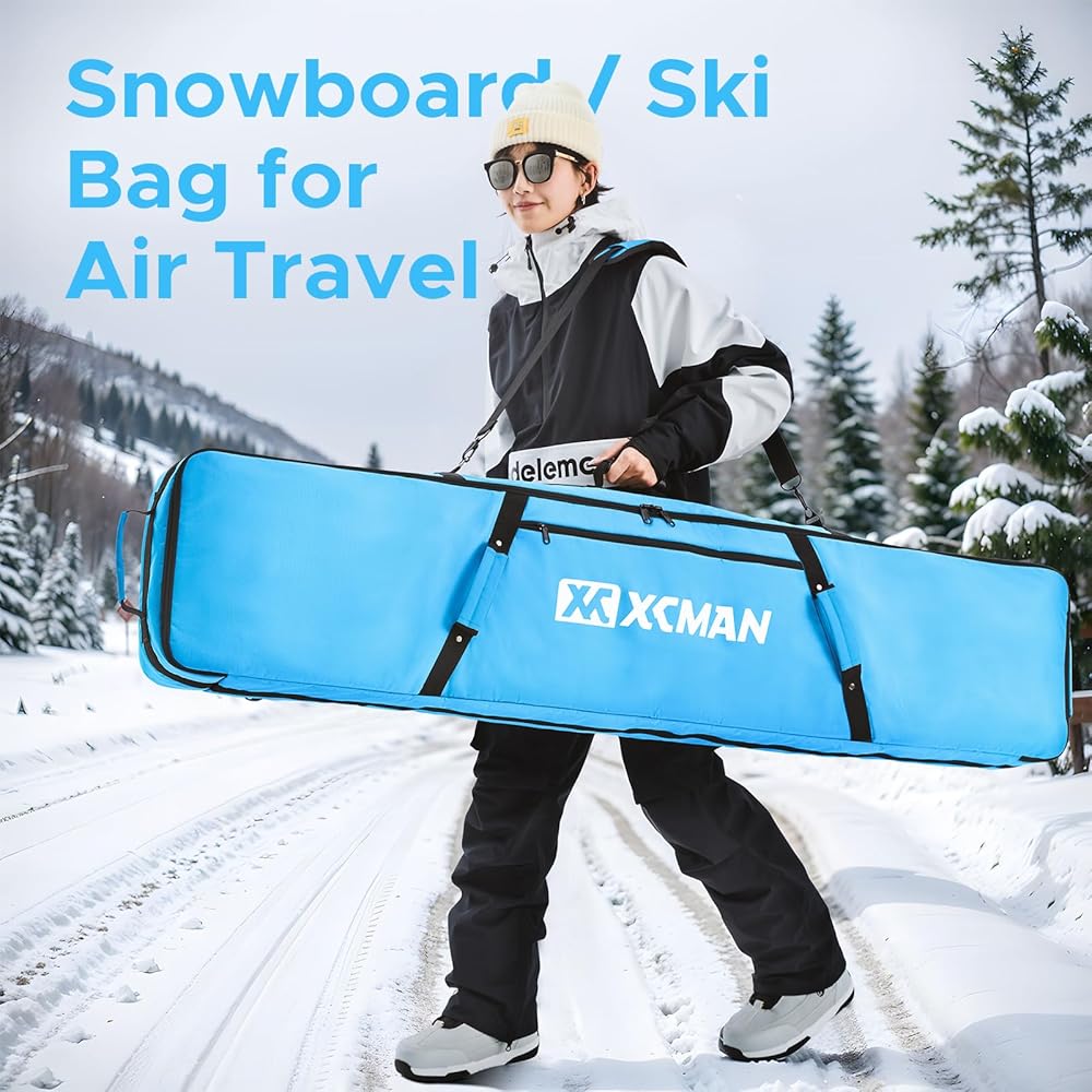 If you're looking to stay safe on the mountain and keep your essential snowboard equipment dry and organized, then get the only bag made specifically for snowboard and snowboard gear—the XCMAN Fully Padded Snowboard Bag. Your board secures inside with two adjustable compression straps and is protected at all times inside the thick foam padding.