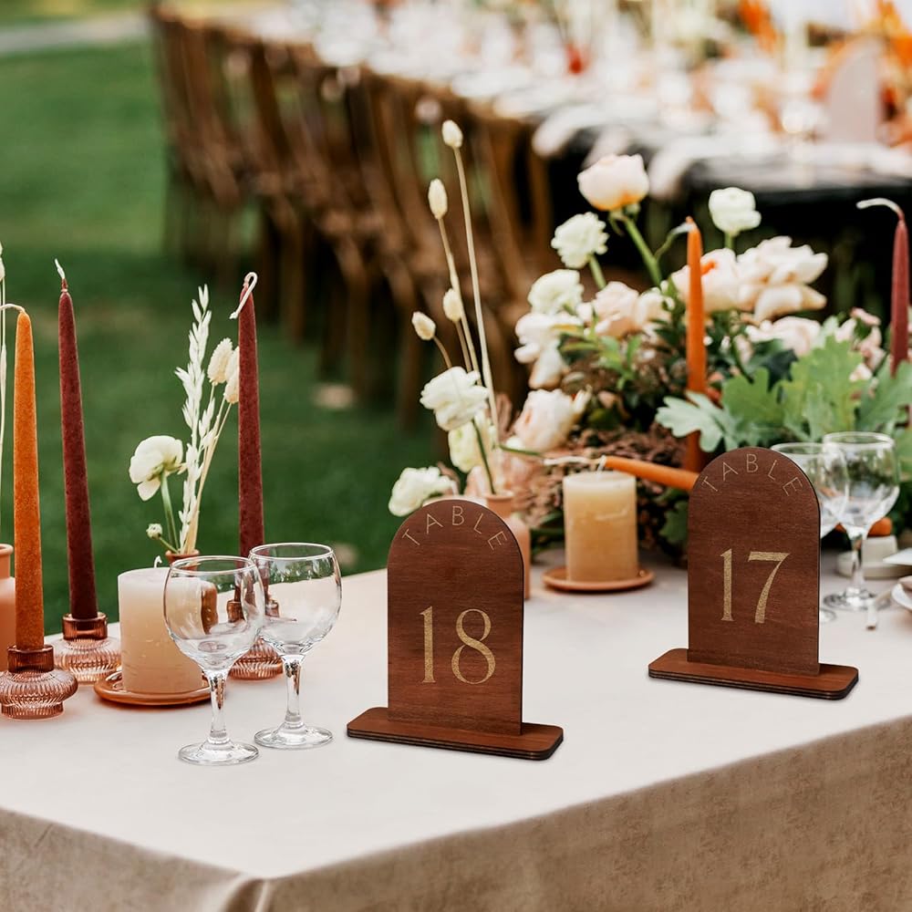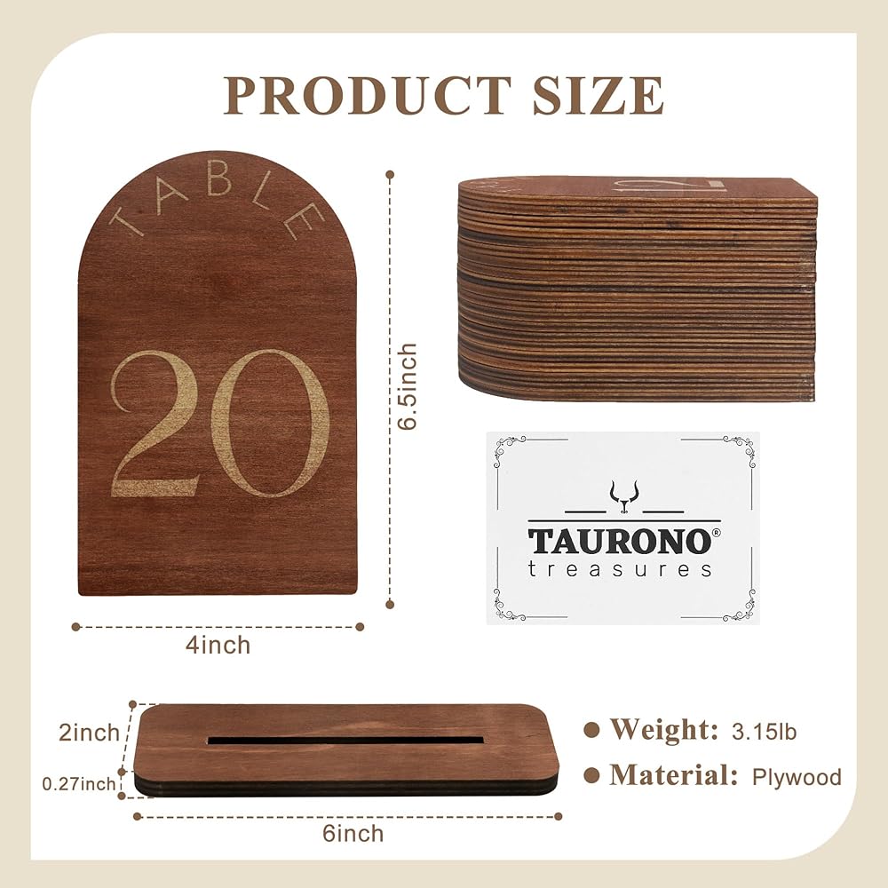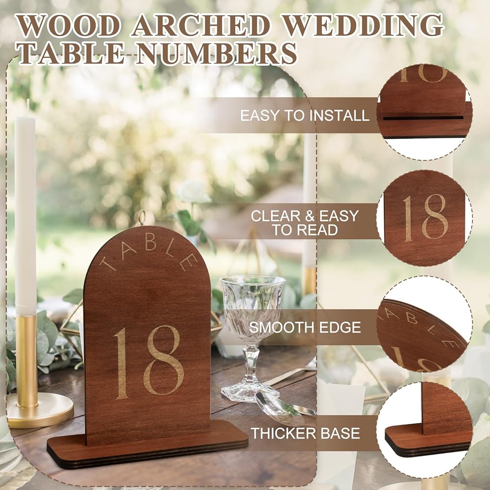 ⚜️**تصميم أنيق:** ارفع ديكور حفل الزفاف الخاص بك من خلال أرقام طاولات الزفاف الخشبية الرائعة، المصممة لمزج السحر الريفي مع الأناقة الفاخرة بسلاسة. تتميز المجموعة المكونة من 20 لافتة بطباعة ذهبية مذهلة على الوجهين، مما يضمن الرؤية والرقي من أي زاوية.