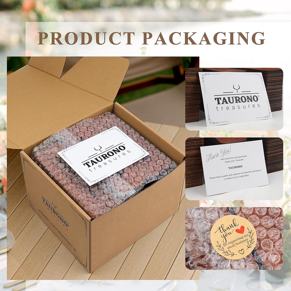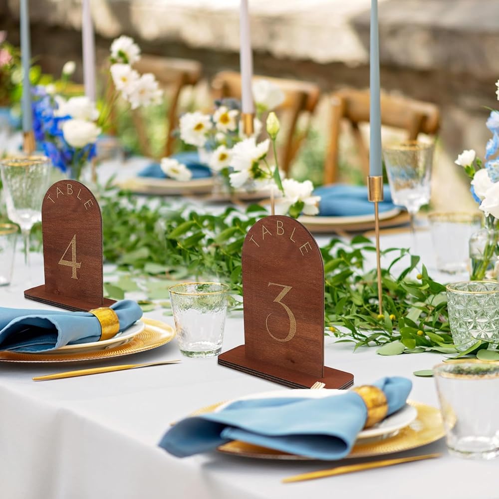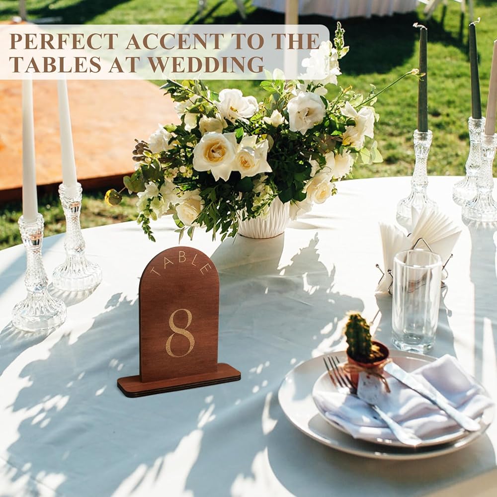 ⚜️**استخدامات متعددة:** مثالية لعشاء الزفاف والمطاعم وحفلات العشاء والمناسبات الأخرى. تصميم متين يسمح بإعادة الاستخدام في مناسبات متعددة. سواء كنت تخطط لحفل زفاف ريفي، أو حفلة عشاء أنيقة، أو تحتاج إلى أرقام طاولة أنيقة لمطعمك، فإن هذه اللافتات الخشبية هي إضافة متعددة الاستخدامات وجميلة لديكورك. تضمن جمالية المزرعة الطبيعية جنبًا إلى جنب مع لمسة نهائية ذهبية فاخرة أنها تكمل أي مكان، مما يخلق تجربة لا تنسى لضيوفك.