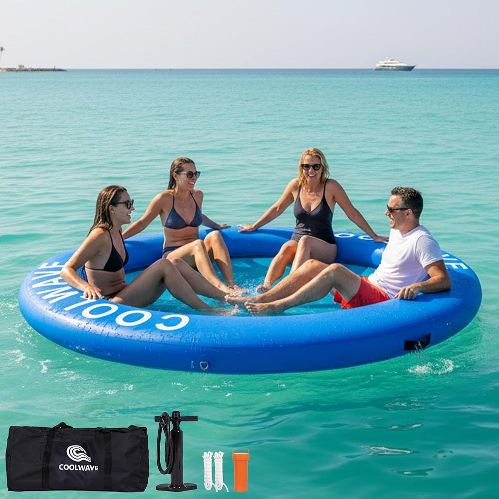أرجوحة مائية متينة: تم تصميم أرجوحة المياه القابلة للنفخ من COOLWAVE ببنية من قطعة واحدة، مما يضمن متانة فائقة مقارنة بالمنتجات الأخرى التي يتم تجميعها بدرزات. يقلل الهيكل الخاص بشكل كبير من احتمالية تسرب الهواء
