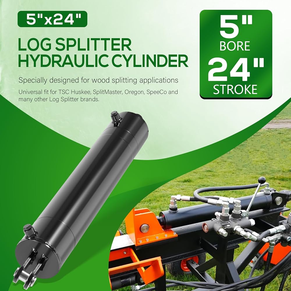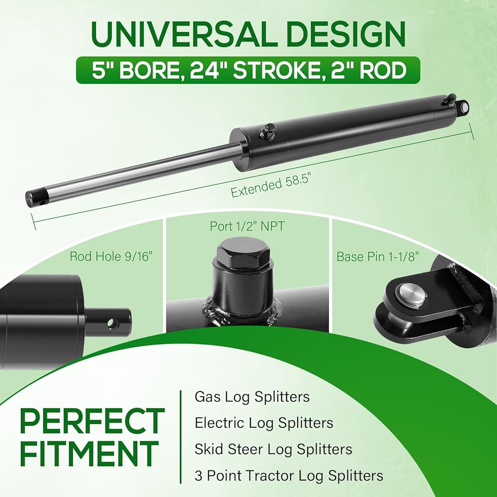 • 【Universal Design】5"x24" Hydraulic Cylinders specially designed for wood splitting applications, for use in different types of log splitting equipment such as Gas Log Splitters, Electric Log Splitters, 3 Point Tractor Log Splitters and Skid Steer Log Splitters.