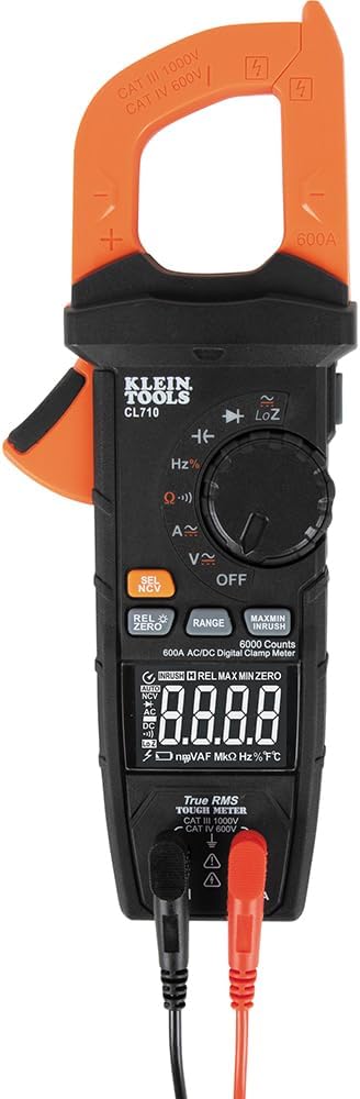 Klein Tools CL710 Clamp Meter delivers accurate measurements across AC/DC current, voltage, resistance, continuity, frequency, and capacitance, all with True RMS precision. It features diode testing and a Low Impedance (LoZ) mode to eliminate ghost voltages. The clamp features NCV detection with escalating audio-visual alerts the closer to the voltage source. The transflective reverse-contrast display and lighted dial ensure visibility in any lighting; a reliable tool for diverse applications. For more than 160 years, Klein Tools has manufactured premium-quality, professional-grade hand tools that deliver the performance, durability and precision needed to get the job done right. Our family of engineers, workers and craftsman continue to put six generations of expertise into every tool we create by using only the highest quality materials, superior workmanship, and keeping manufacturing as close to home as we can. Klein isn't just the name of our company, it's also our family name. And since we're an American company that's family-owned and family-run, you know you can count on us to be here tomorrow. Klein Tools doesn't just make great products, we make great products that stand up to the demands of the professionals who use them every day ... Since 1857.
