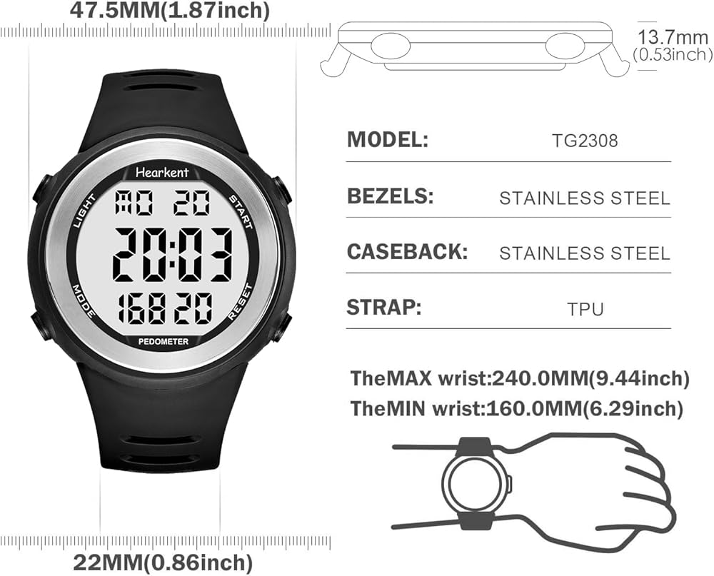سهلة التشغيل: ساعة عداد الخطوات هذه تعمل بكامل طاقتها، ولا تحتاج إلى توصيلها بهاتف محمول، وهي سهلة الاستخدام، ويمكن أن يتعلمها كبار السن. مناسبة للعدائين أو عشاق اللياقة البدنية أو الأشخاص المشغولين