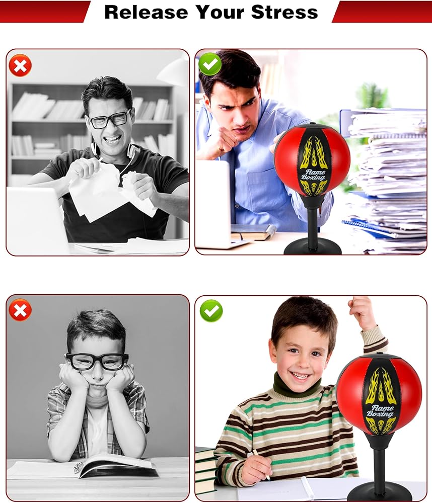 تخفيف التوتر بشكل فعال: طريقة رائعة للتخلص من التوتر في العمل أو الاسترخاء في المنزل، توفر حقيبة اللكم للأطفال والكبار على حد سواء منفذًا جسديًا للتوتر. مثالية لألعاب إدارة الغضب، فهي تساعدك على البقاء هادئًا ومركزًا ونشطًا طوال يومك. يجب اقتناؤه كهدايا لتخفيف التوتر.