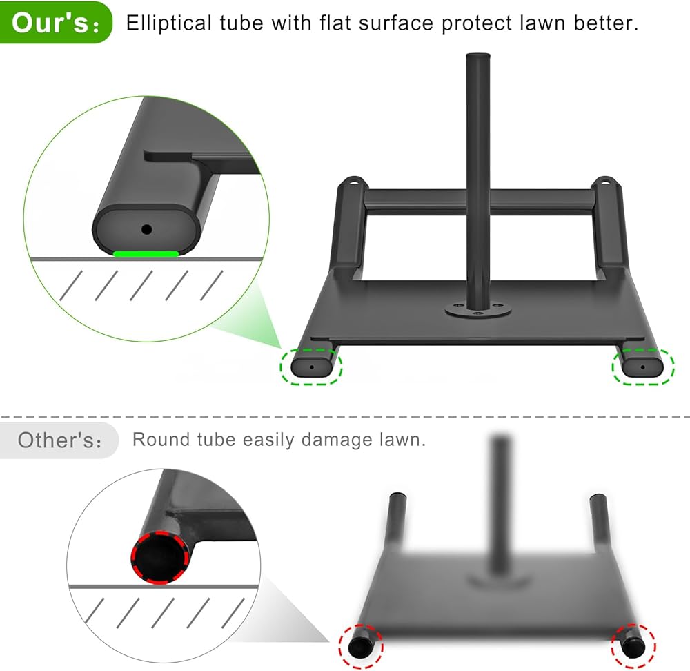 【تصميم مبتكر】أنابيب بيضاوية ذات أسطح مسطحة تحمي العشب والسجاد، بينما يتنقل الجزء الأمامي والخلفي المنحني في التضاريس غير المستوية، مما يضمن تدريبًا آمنًا ومريحًا في الهواء الطلق.