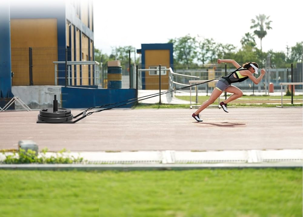 SELEWARE مزلقة الوزن، مزلجة التدريب على اللياقة البدنية، مزلجة تدريب السرعة مع حزام، مثالية للتمرين الرياضي الداخلي/الخارجي والتدريب على السرعة، تناسب لوحات الوزن مقاس 1 بوصة و2 بوصة