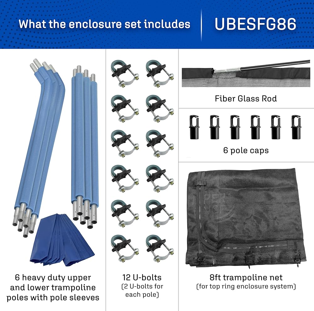Upper Bounce Trampoline Safety Enclosure Set of Net, Poles & Hardware: