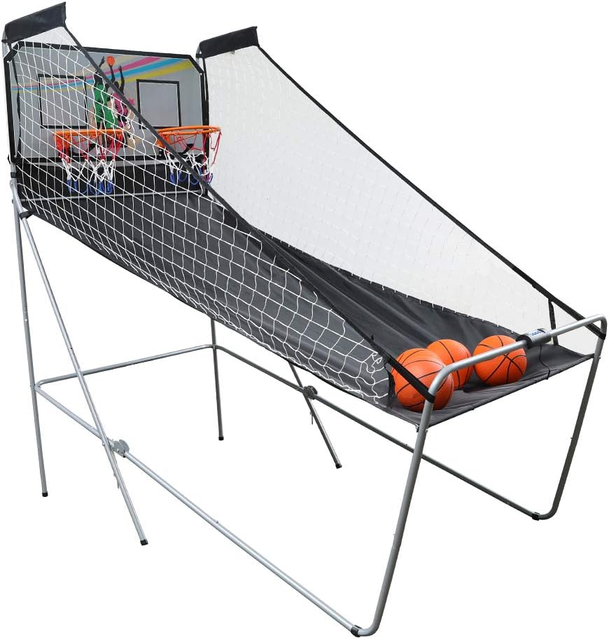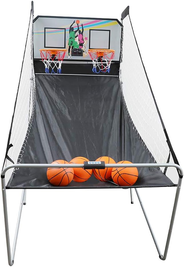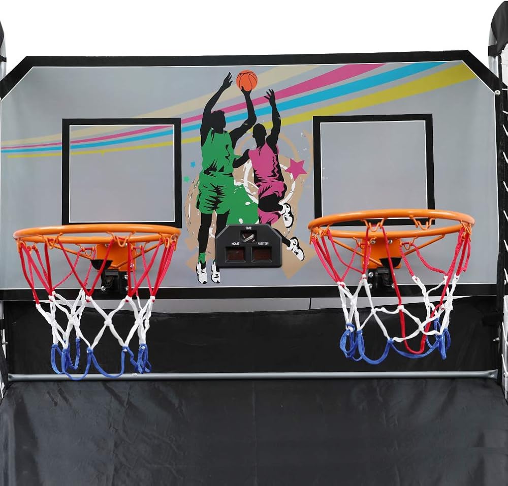 • Double Shot - حلقتان مقاس 12 بوصة مصممتان وأربع كرات مقاس 7 بوصات تعمل على إثراء التنوع في التصويب وتجلب المزيد من المتعة، سواء لاعب واحد أو لاعبين متعددين، يمكنك دائمًا تحقيق أقصى قدر من المتعة مع لعبة أركيد كرة السلة هذه