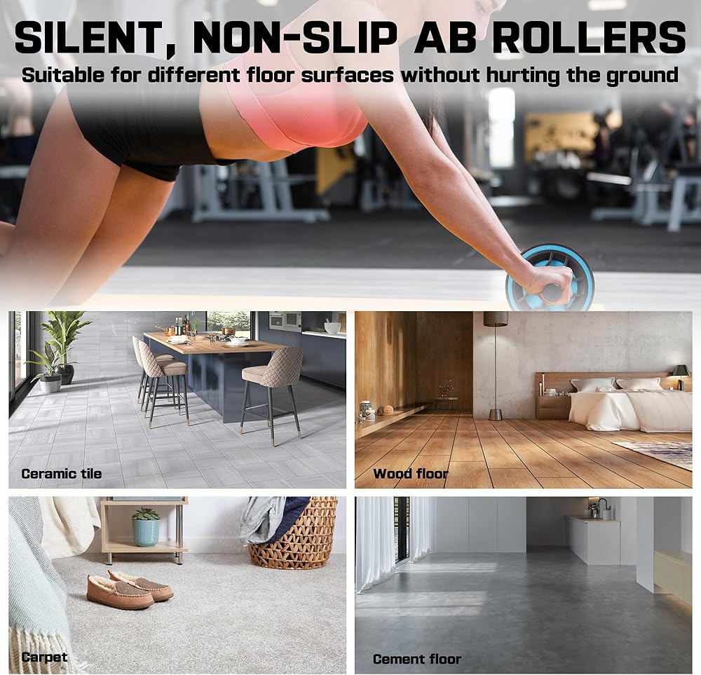 • 【Silent & Non-slip】Our abs roller workout equipment, using non-slip rollers, with super friction, not easy to slip, while using a silent design does not hurt the floor and carpet, gel cotton handle, comfortable grip, to protect your hands, and more sweat-absorbent