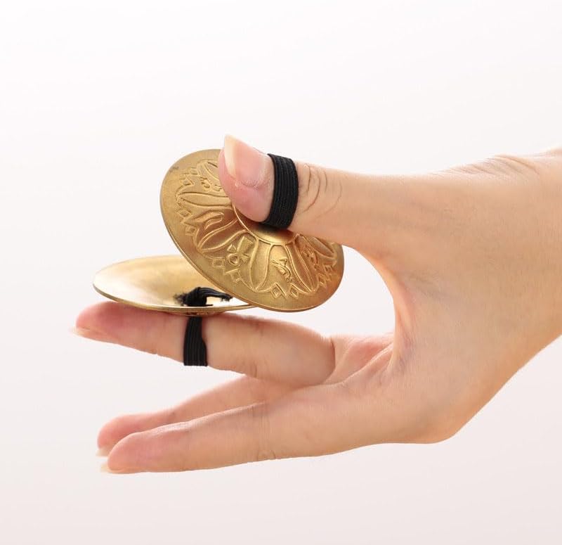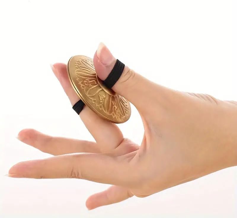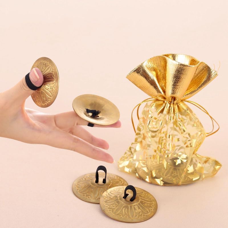 Package includes: 4pcs Unique Golden Finger Cymbals - Round Alloy Musical Instruments for Stage Performance, Party Play, and Gift - Perfect for Halloween, Christmas, Bar, Club, Rave, and LARP Events