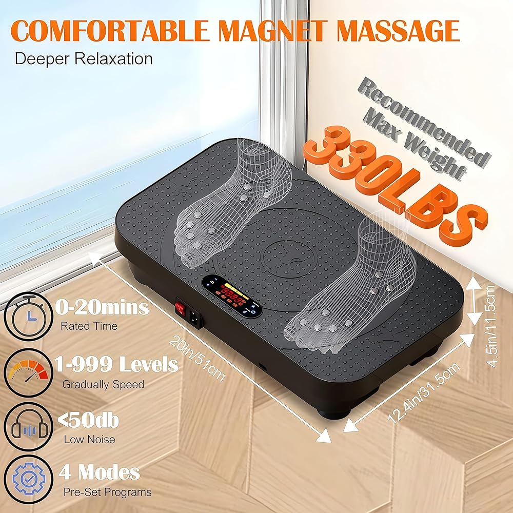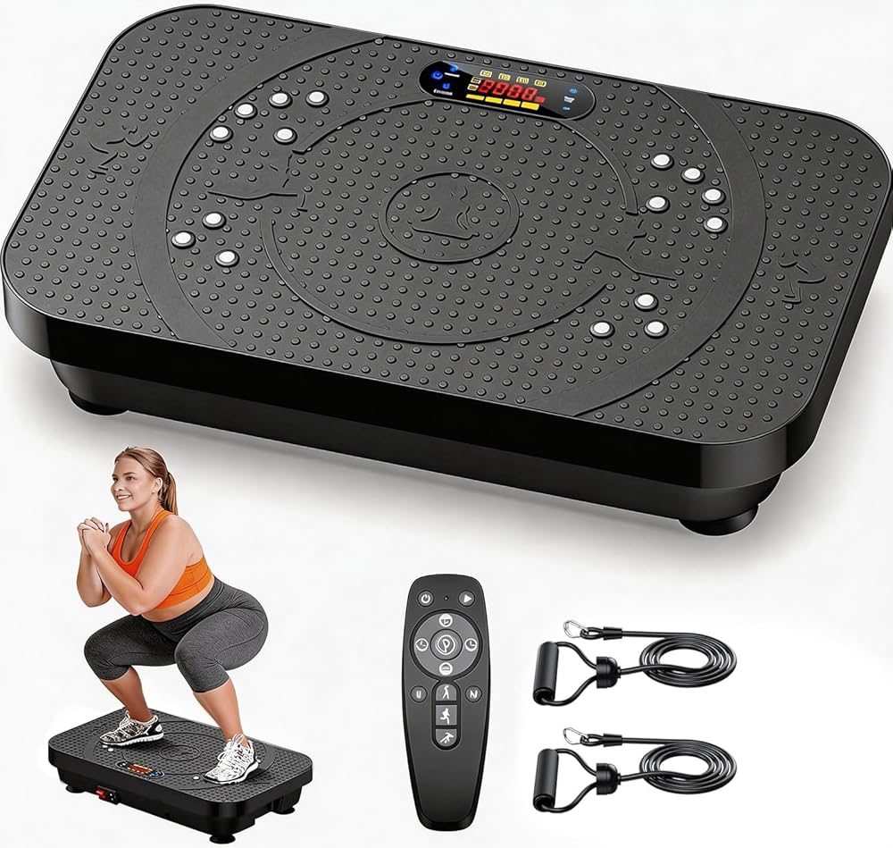آلة تمرين لوحة الاهتزاز - هزاز لكامل الجسم مع الوضع التلقائي، وتدليك الضغط الإبري ودواسة السيليكون، للتصريف اللمفاوي، وفقدان الوزن وحرق الدهون، ومعدات اللياقة البدنية المنزلية للنساء والرجال