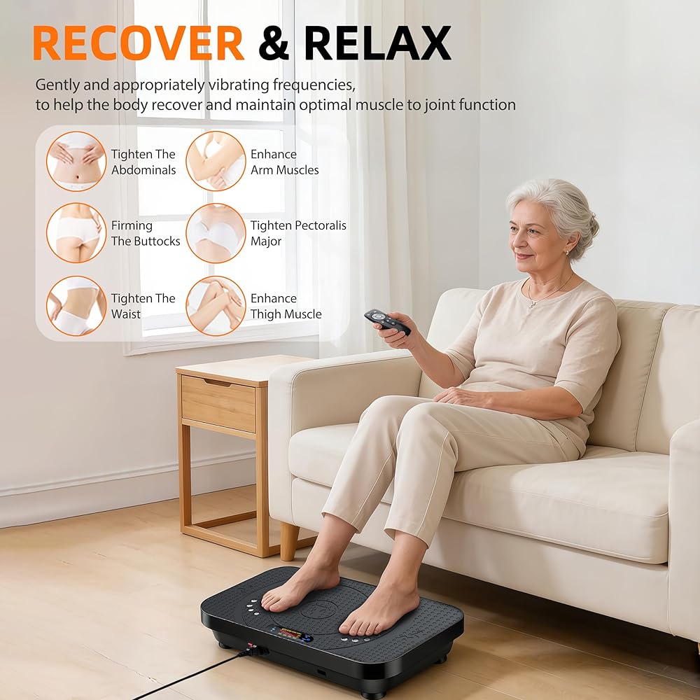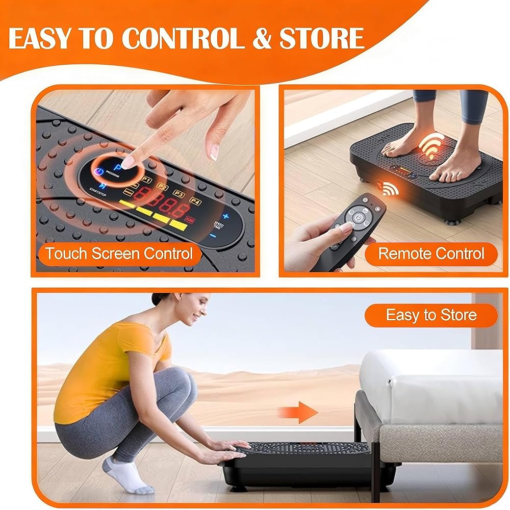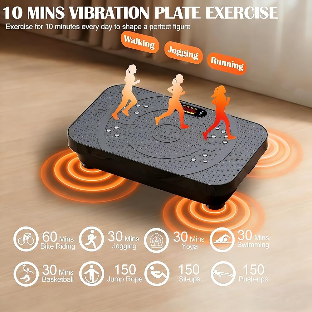 جهاز التحكم عن بعد وسهل التخزين - مع جهاز التحكم عن بعد، يمكنك التحكم في الجهاز عن بعد. تتيح لك شاشة LED المضاءة رؤية الوقت والسرعة بسهولة للحصول على رؤية واضحة للتمرين الخاص بك. تصميم لوحة اهتزاز مدمجة بوزن 7.5 كجم فقط، يمكن أن يوفر المساحة، وسهل الحمل والتخزين. حول أي مكان إلى صالة الألعاب الرياضية الشخصية الخاصة بك