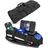 حقيبة بيسبول دوارة بعجلات من DSLEAF، حقيبة لالتقاط الكرة اللينة لـ 4 مضارب، وحقيبة معدات البيسبول ذات العجلات مع مساحة منفصلة للأحذية وجيوب متعددة لجميع معدات البيسبول اللينة
