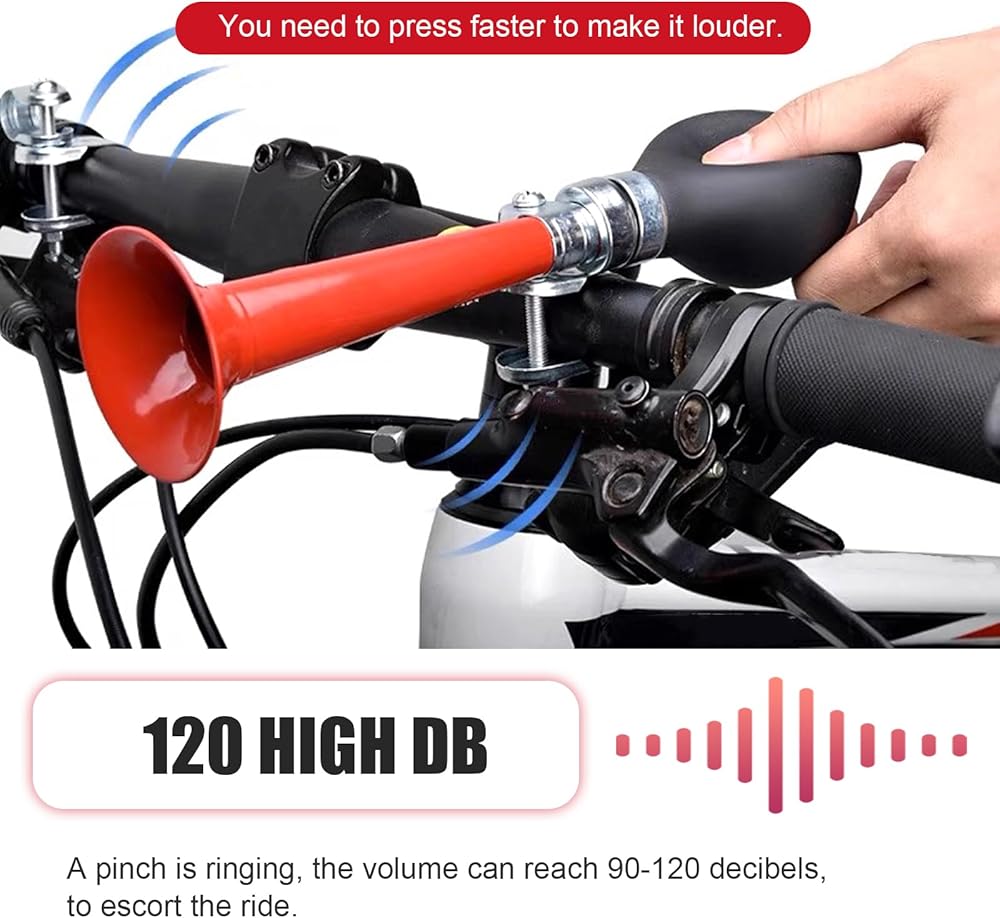 Lightweight Design: The overall design of the horn is lightweight, making it easy to install on a bicycle without adding too much weight. It is easy to operate, just squeeze the ball to make a sound, which is convenient for quick response when riding.