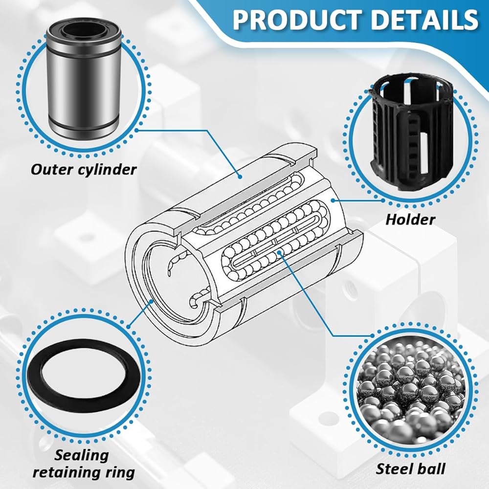 • The packaging includes:1x Linear Ball Bearings