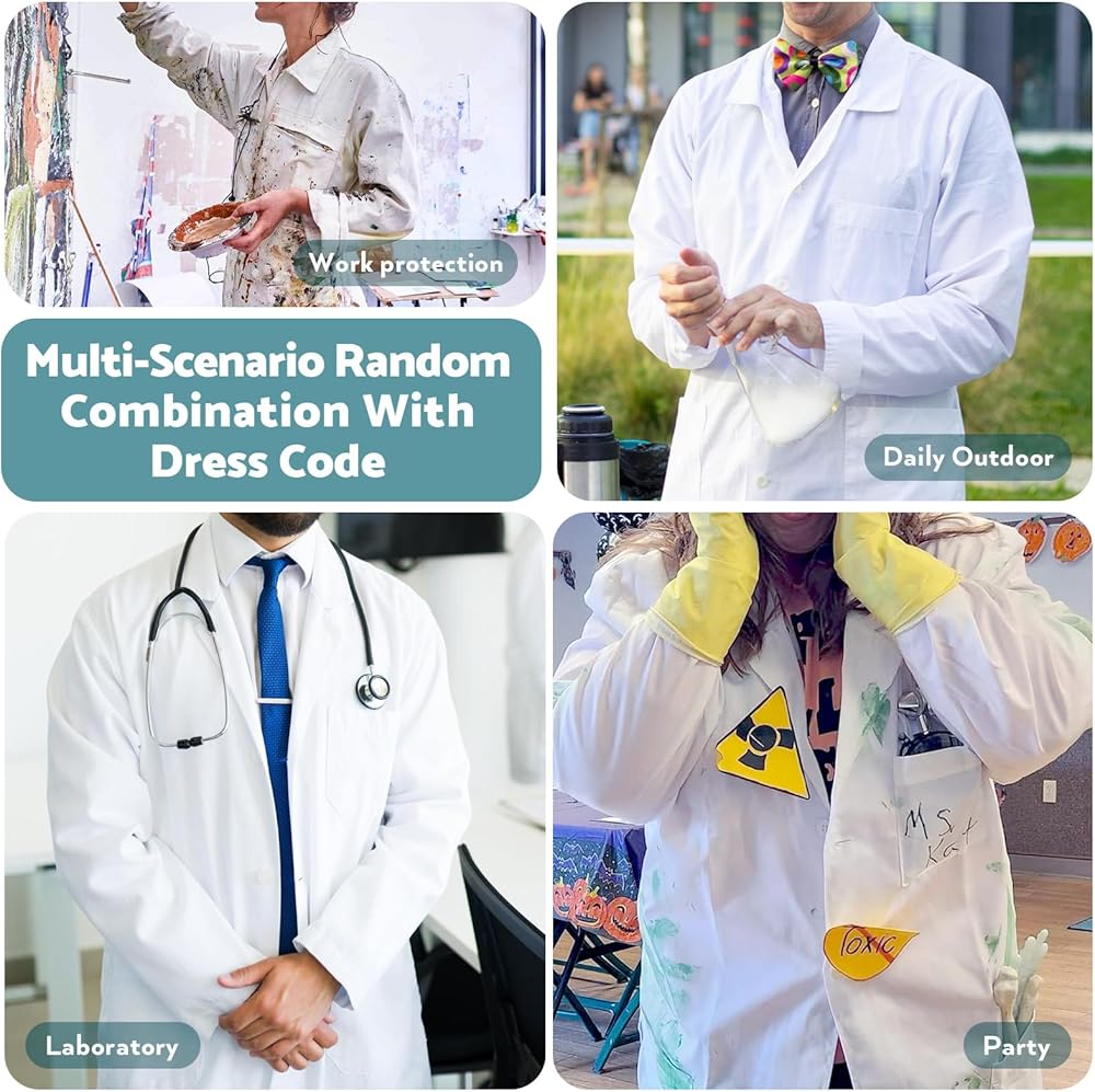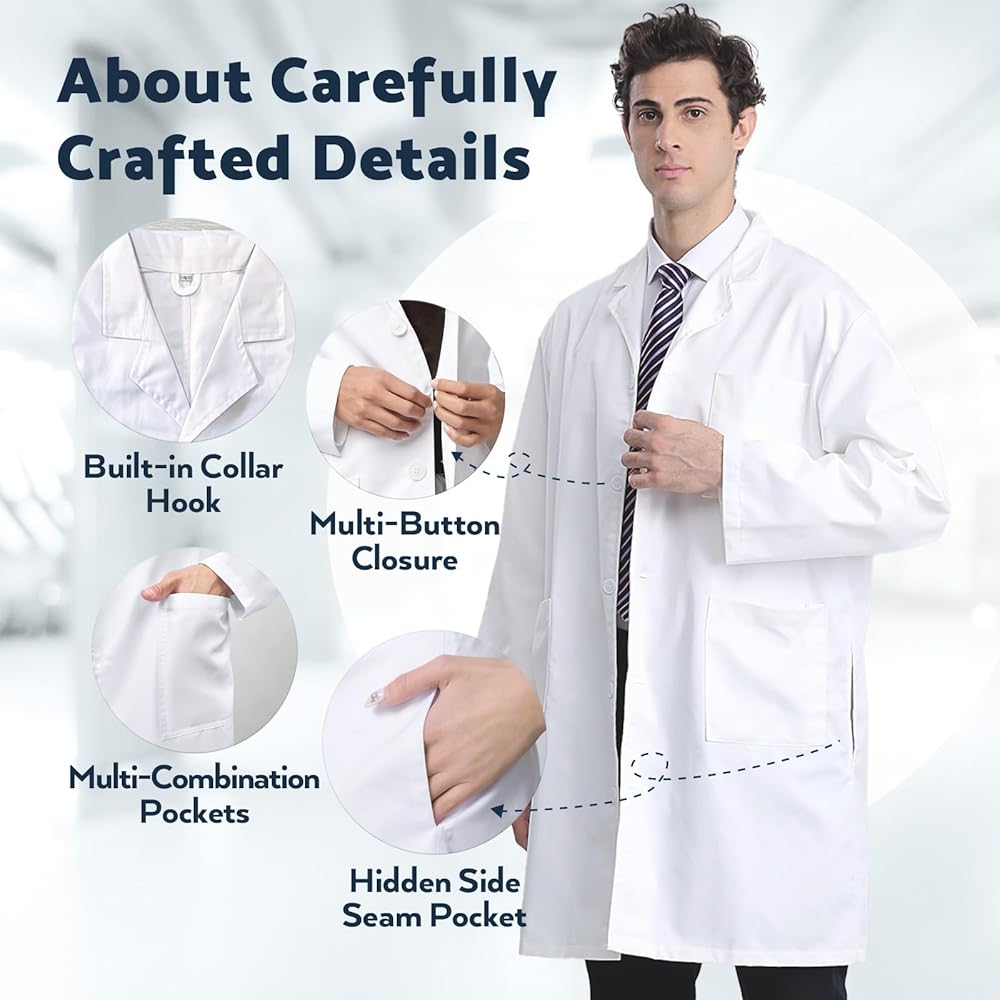 • يمكن غسله في الغسالة: إحدى الميزات البارزة لمعطف المختبر هذا هي طبيعته سهلة التنظيف. يسمح لك القماش المتين بغسله بشكل متكرر دون القلق بشأن فقدان جودته. تعد الحواف المحاطة باحترافية بمثابة شهادة على الاهتمام بالتفاصيل ومراقبة الجودة التي تم استخدامها في صنع معطف المختبر هذا. معطف مختبر Greenour مصمم ليدوم طويلاً.