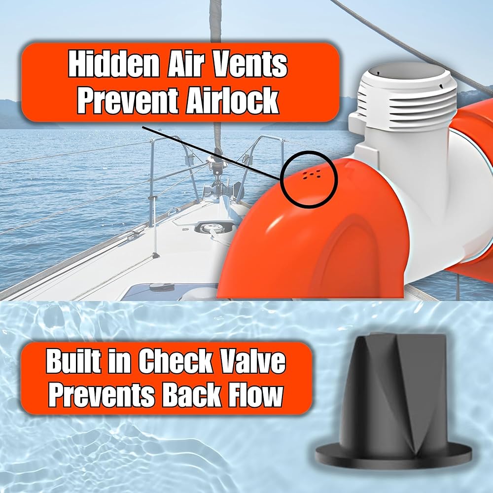 [تتضمن خيارات منافذ متعددة]: تأتي مع تركيبات لخراطيم منفذ 3/4 بوصة (19 مم)، 1 بوصة (25 مم)، و1-1/8 بوصة (29 مم)، مما يوفر المرونة لمجموعة متنوعة من التطبيقات البحرية.
