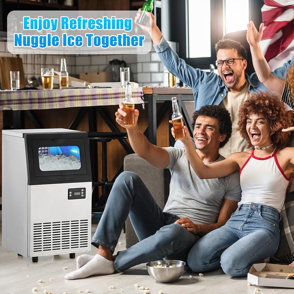 🥤تشغيل هادئ وفعال: ينتج الضاغط الفعال الثلج بهدوء، مما يحافظ على بيئة مريحة دون ضوضاء مزعجة. استمتع بإمدادات ثلج ثابتة دون متاعب الصوت الزائد