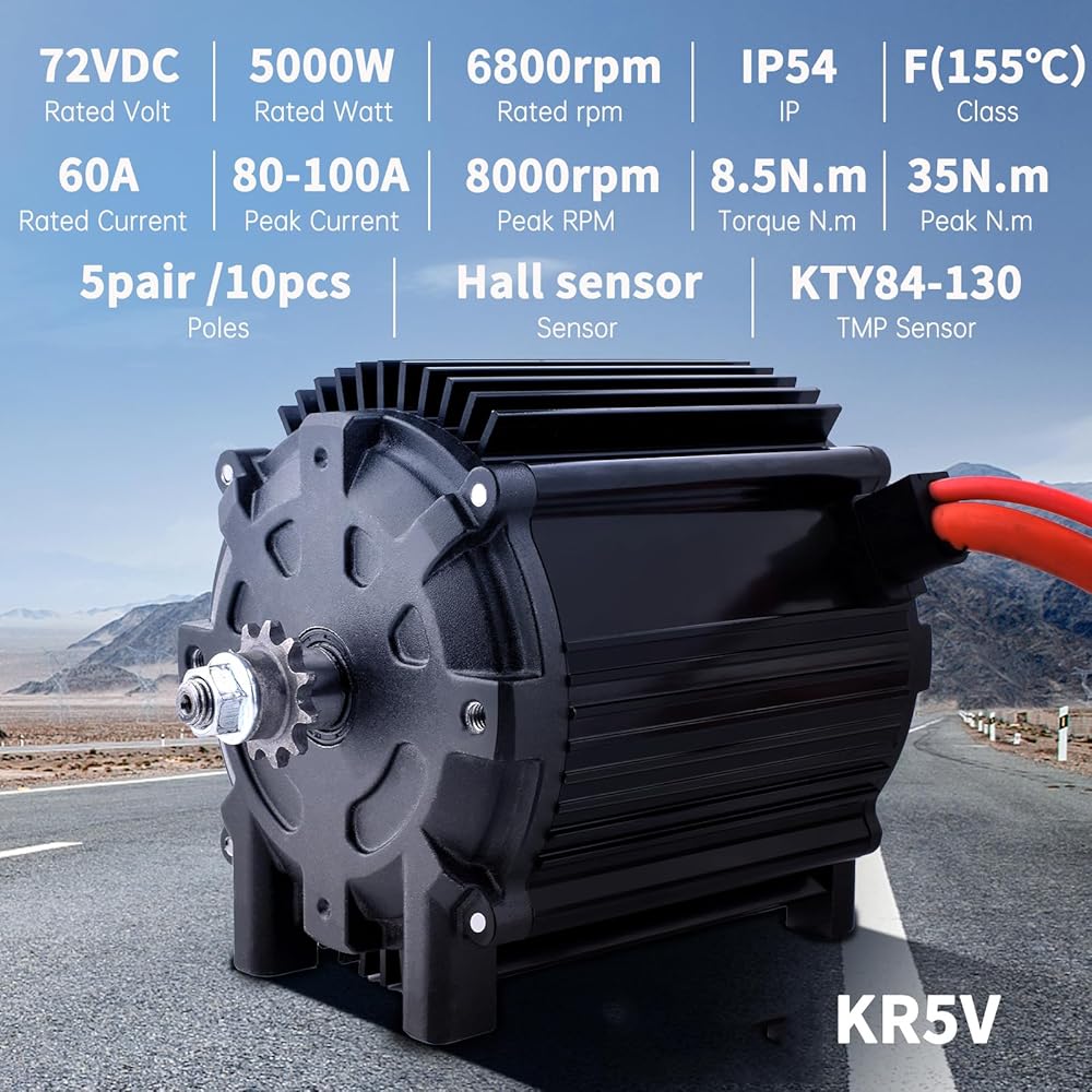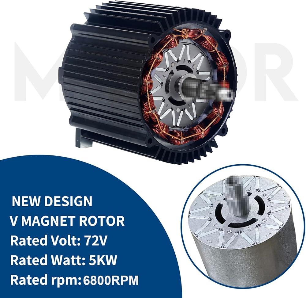 • 【ترقية جديدة لدوار مغناطيسي على شكل حرف V】 محرك بدون فرش بقوة 72 فولت 5000 وات، ترقية الدوار المغناطيسي على شكل حرف V، 5 أزواج من أقطاب المغناطيس، أكثر استقرارًا، وكفاءة عالية، محرك الدراجة الترابية الكهربائي 5000 واط مع مستشعر درجة الحرارة KTY84-130، يمكنك ضبط درجة الحرارة من خلال البرمجة وحدة التحكم، لحماية أفضل وإطالة عمر خدمة المحرك.