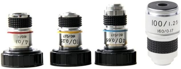 - التكبير: 4X/10X/40X/100X. خيط RMS القياسي. حجم التركيب: 20.2 ملم. النوع: مجهر عدسة موضوعية لونية.