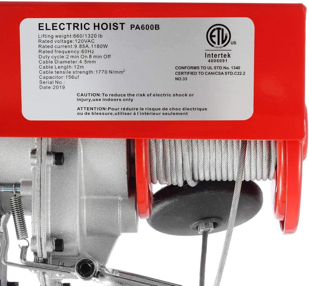 [المواصفات]: سترفع رافعة الكابلات الكهربائية خفيفة الوزن هذه ما يصل إلى 38 قدمًا في الهواء، مما يسمح لك برفع أي حمل بسرعة وأمان دون مشكلة. كابل خط من الفولاذ الكربوني عالي القوة. أقصى سعة تحميل تصل إلى 1320 رطل/600 كجم. تحميل خط واحد 660 رطل/300 كجم وتحميل خط مزدوج 1320 رطل/600 كجم. الحد الأقصى لارتفاع الرفع 38 قدمًا للخط الفردي، 19 قدمًا للخط المزدوج؛
