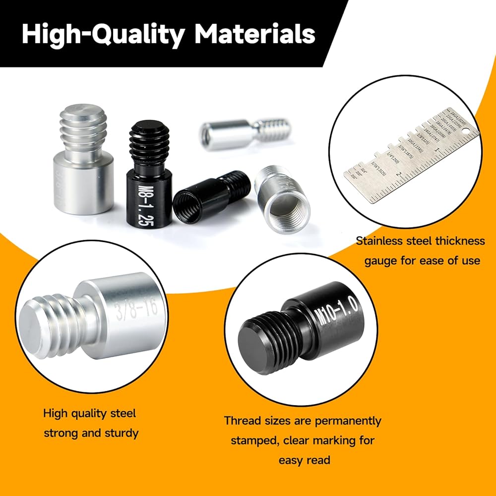 مواد عالية الجودة: مجموعة قياس الصواميل والمسامير الخاصة بنا مصنوعة من سبائك الألومنيوم عالية الجودة مع لمسة نهائية مطلية بالنيكل من أجل المتانة ومقاومة ممتازة للتآكل؛ يضمن البناء القوي أن كل متر قوي وموثوق، مما يجعله أداة يجب اقتناؤها لأي ورشة عمل أو متحمس للأعمال اليدوية. يأتي مع مقياس سمك معدني، وهو سهل الاستخدام؛