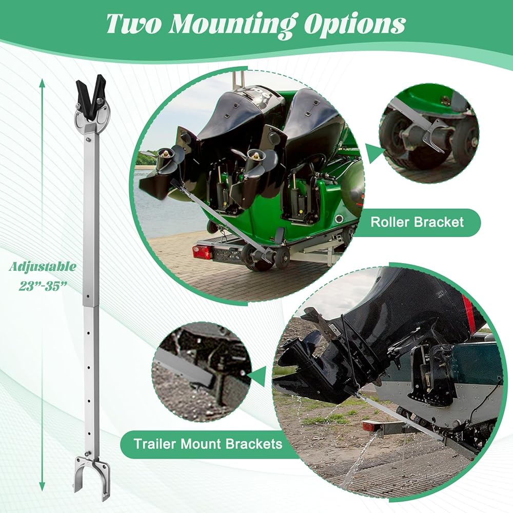 【قابل للتعديل ومرن】يوفر دعم المحرك الخارجي خيارين للتركيب، دعامة دوارة ودعامة تثبيت المقطورة، لتلبية احتياجات تكوين المقطورة المختلفة، يمكن تعديل طول عمود توفير النقل من 23 إلى 35 بوصة لتلبية احتياجات إعدادات القوارب المختلفة. .