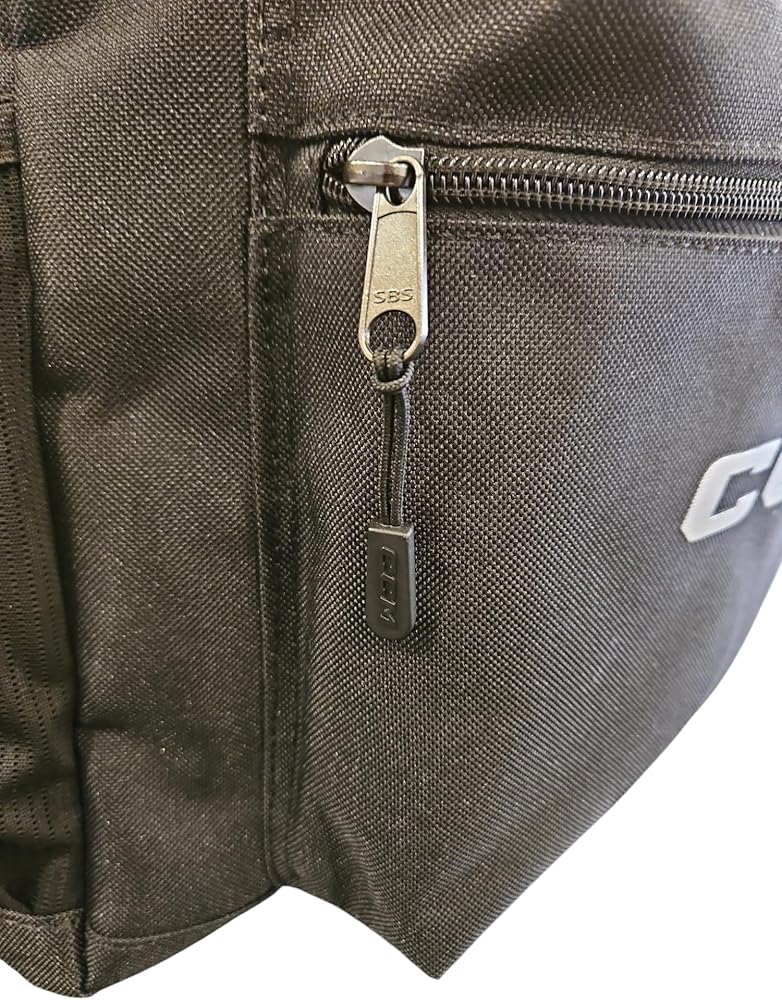 The CCM Hockey Basic Backpack is a durable and functional choice for athletes! Crafted from 600D polyester, this backpack is built to withstand daily wear and tear. Adjustable padded shoulder straps and a padded back panel provide comfortable carrying, while the webbed top handle offers an additional grip option. The main compartment features a dedicated laptop pocket, ensuring your device stays secure and protected. An exterior zippered accessory pocket and a side water bottle pocket offer convenient storage solutions. With its sleek black design, this backpack combines practicality and style seamlessly.