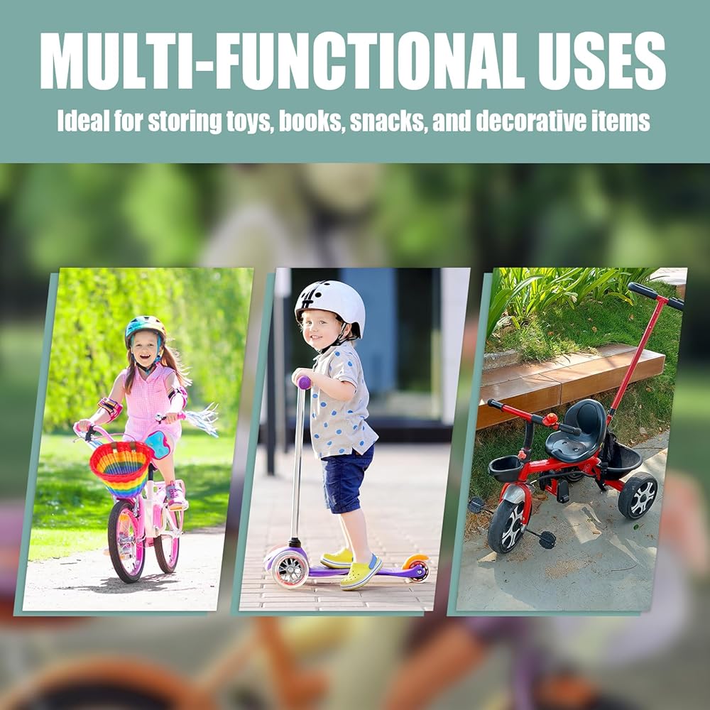 مثالية للضروريات الصغيرة: حمل الألعاب والوجبات الخفيفة والكتب والمفاتيح وغيرها من الأشياء الصغيرة بأمان أثناء ركوب الدراجة. تضمن هذه السلة الأمامية بقاء جميع الأساسيات في مكانها بشكل آمن، مما يمنح الأطفال تجربة ركوب بدون استخدام اليدين وخالية من القلق.
