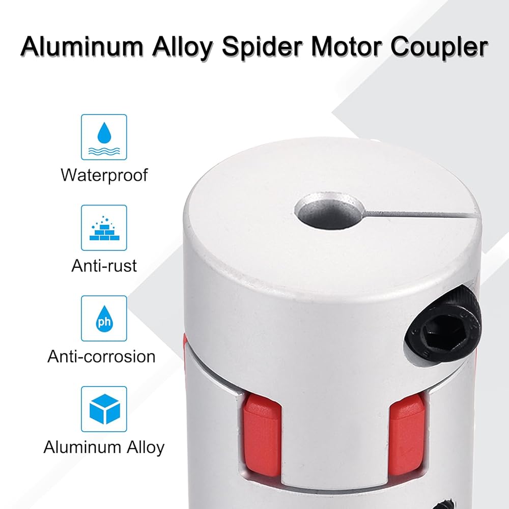 This durable motor coupler connector, crafted from aviation aluminum with high corrosion resistance, hardness, and precision, features an anodized surface treatment for enhanced strength and durability, optimal for motors, 3D printers, and DIY models. The Spider Material design is capable of absorbing vibrations and is suitable for large torque transmission and longer service life. Easy to install and suitable for a wide range of shaft sizes, making it perfect for various servo motor systems and CNC machines.