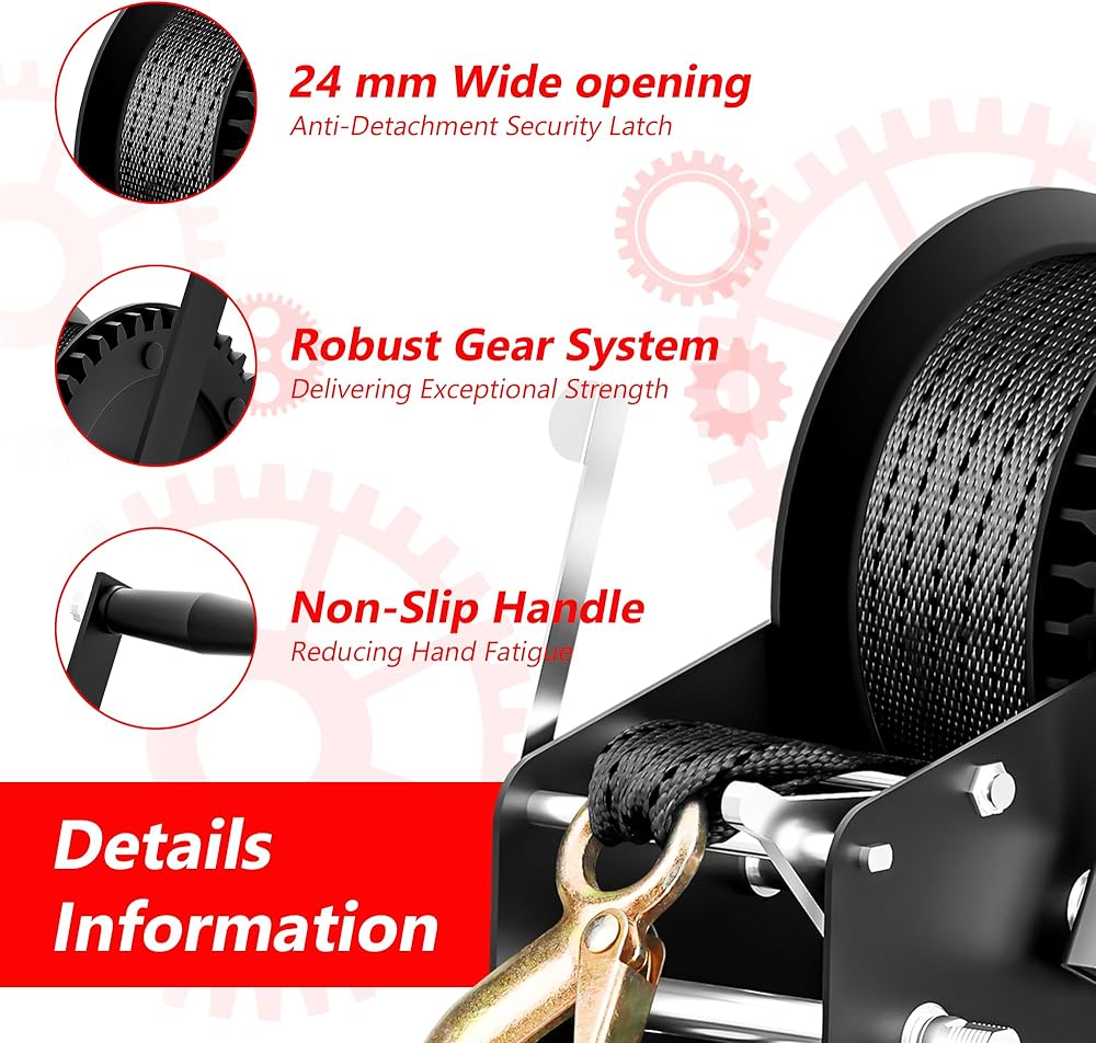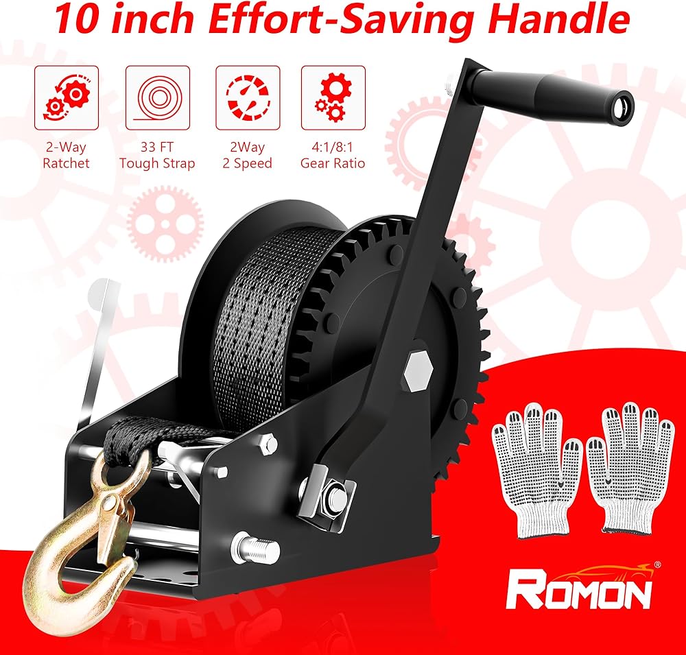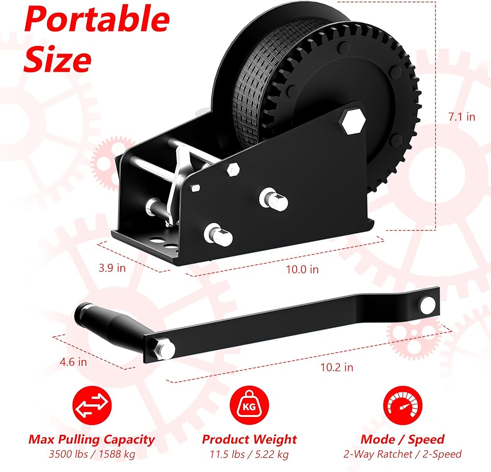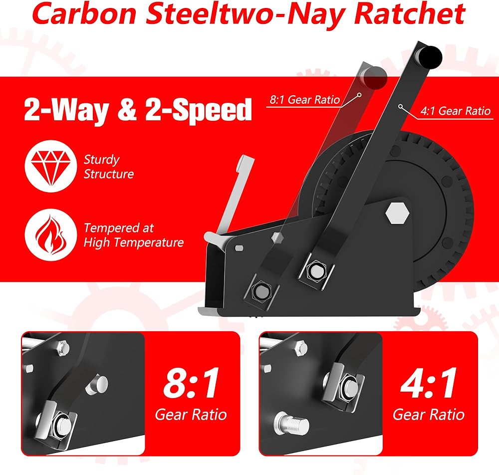 [سعة 3500 رطل] تتميز الروافع المحمولة شديدة التحمل بسحب 3500 رطل، وحزام بوليستر 10 متر (33 قدمًا) × 5 سم، ونسب تروس 4:1 و8:1، مع تروس سريعة للمشروعات الأخف والأصغر والتروس البطيئة للأثقل. ومشاريع أكبر. بفضل قاعدته الصلبة، فإنه يوفر لك قوة جر قوية مع تقليل الجهد البدني