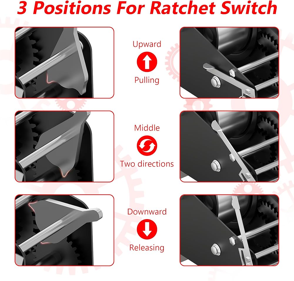 [سقاطة ثنائية الاتجاه] تحتوي الروافع المحمولة شديدة التحمل على خطافات أمان للسقاطات الأمامية والخلفية لسحب وتحرير خط الونش، مما يضمن التشغيل السلس والتحكم الجيد. تشغيل ثنائي الاتجاه بسرعتين، سهل التشغيل، سرعة سريعة، كفاءة عالية