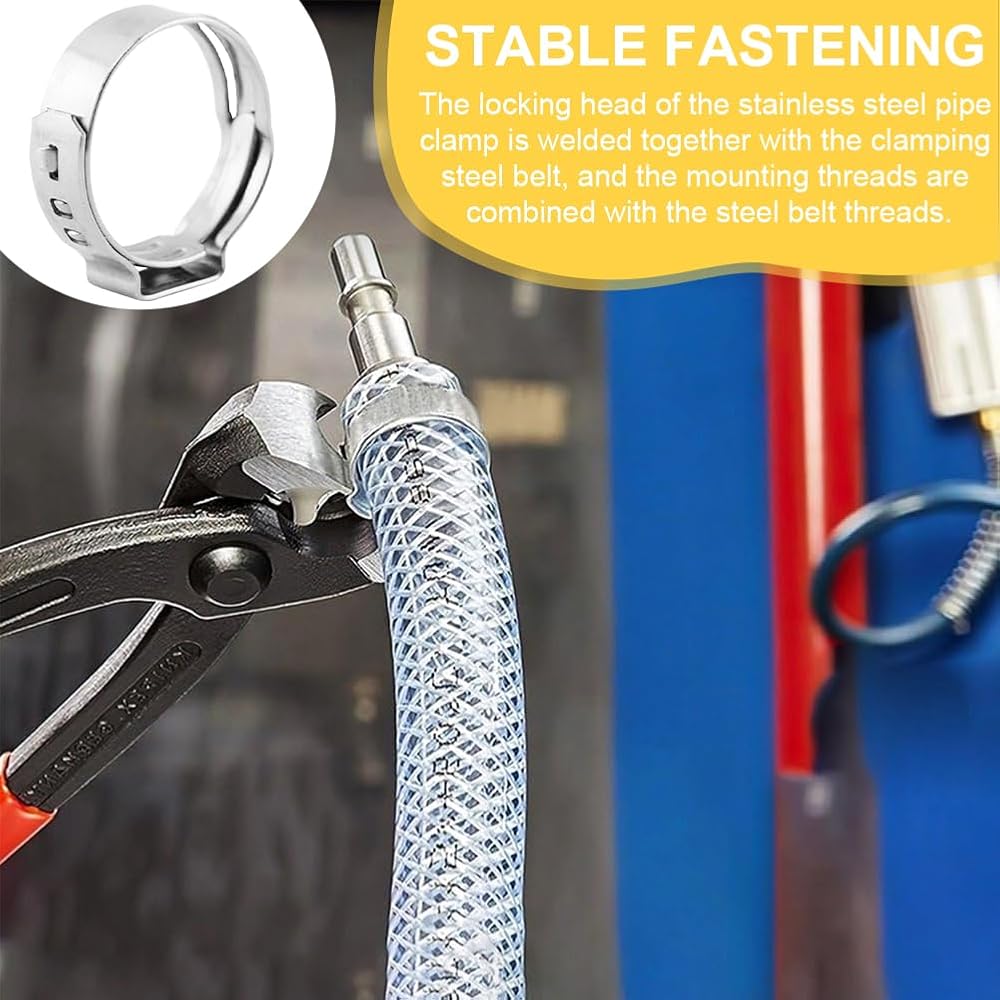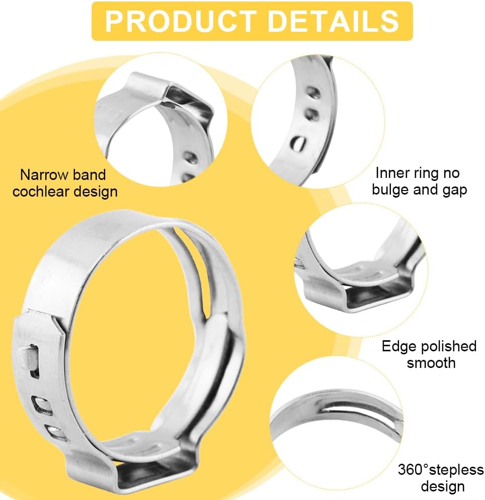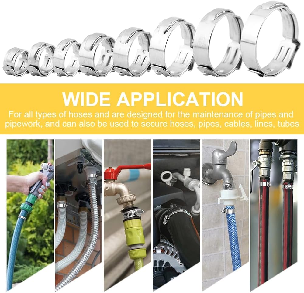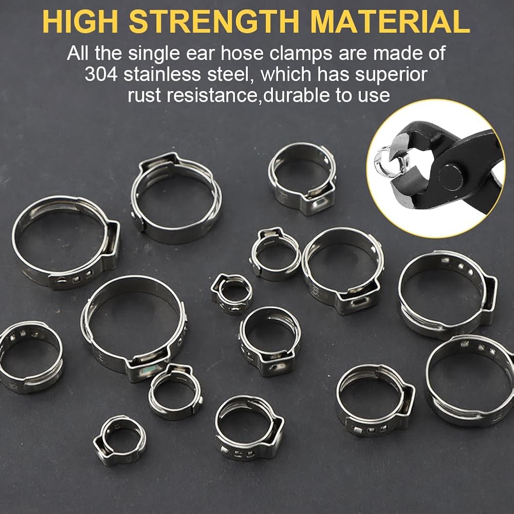 سهولة التركيب: قم ببساطة بتمرير حلقة مشبك الأذن على الأنبوب، وادفع الأنبوب إلى التركيب، واضغط عليه باستخدام أداة المشبك للحصول على ملاءمة آمنة. توفر هذه المجموعة الشاملة طريقة ملائمة لتلبية احتياجات التثبيت المختلفة من خلال مجموعة متنوعة من الأحجام وزردية المكشكش المضمنة. تم تصميم هذه المشابك مع وضع المتانة في الاعتبار، وتوفر حلاً آمنًا وطويل الأمد لاحتياجات الاتصال الخاصة بك.