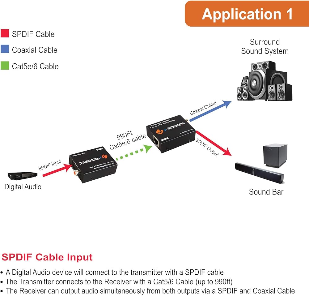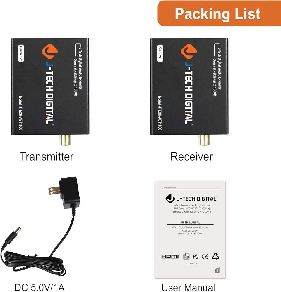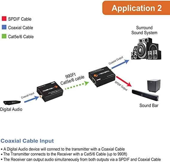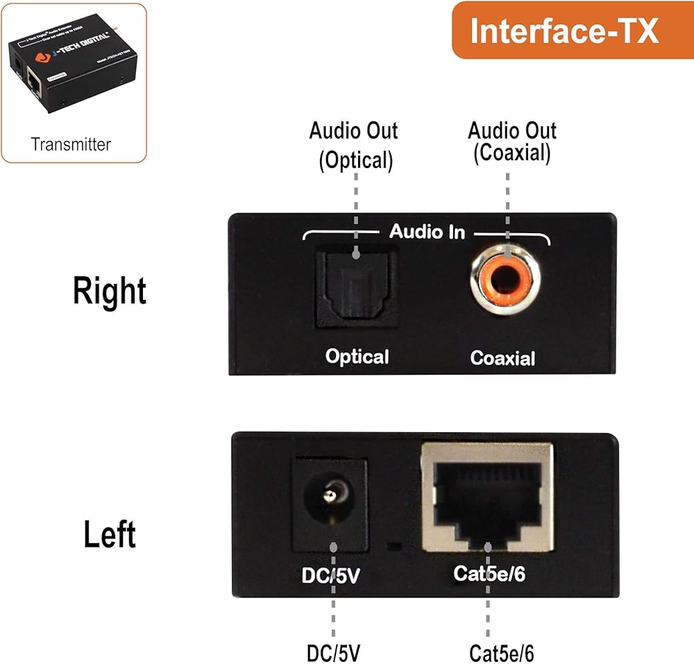 • ✔ 𝐎𝐕𝐄𝐑 𝐄𝐓𝐇𝐄𝐑𝐍𝐄𝐓 قم بتمديد الإشارة الصوتية البصرية أو المحورية حتى 990 بوصة عبر كابل Cat5e/6 UTP. للحصول على الأداء الأمثل المضمون، استخدم كابل إيثرنت J-Tech Digital المخصص بطول 150 بوصة Cat6. (يرجى البحث عن B01IPYVT3Y/JTD-943 لمزيد من التفاصيل)